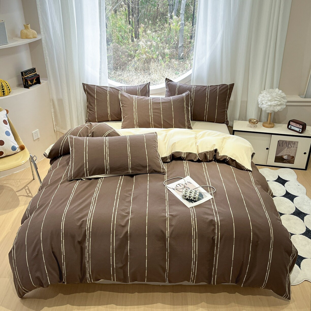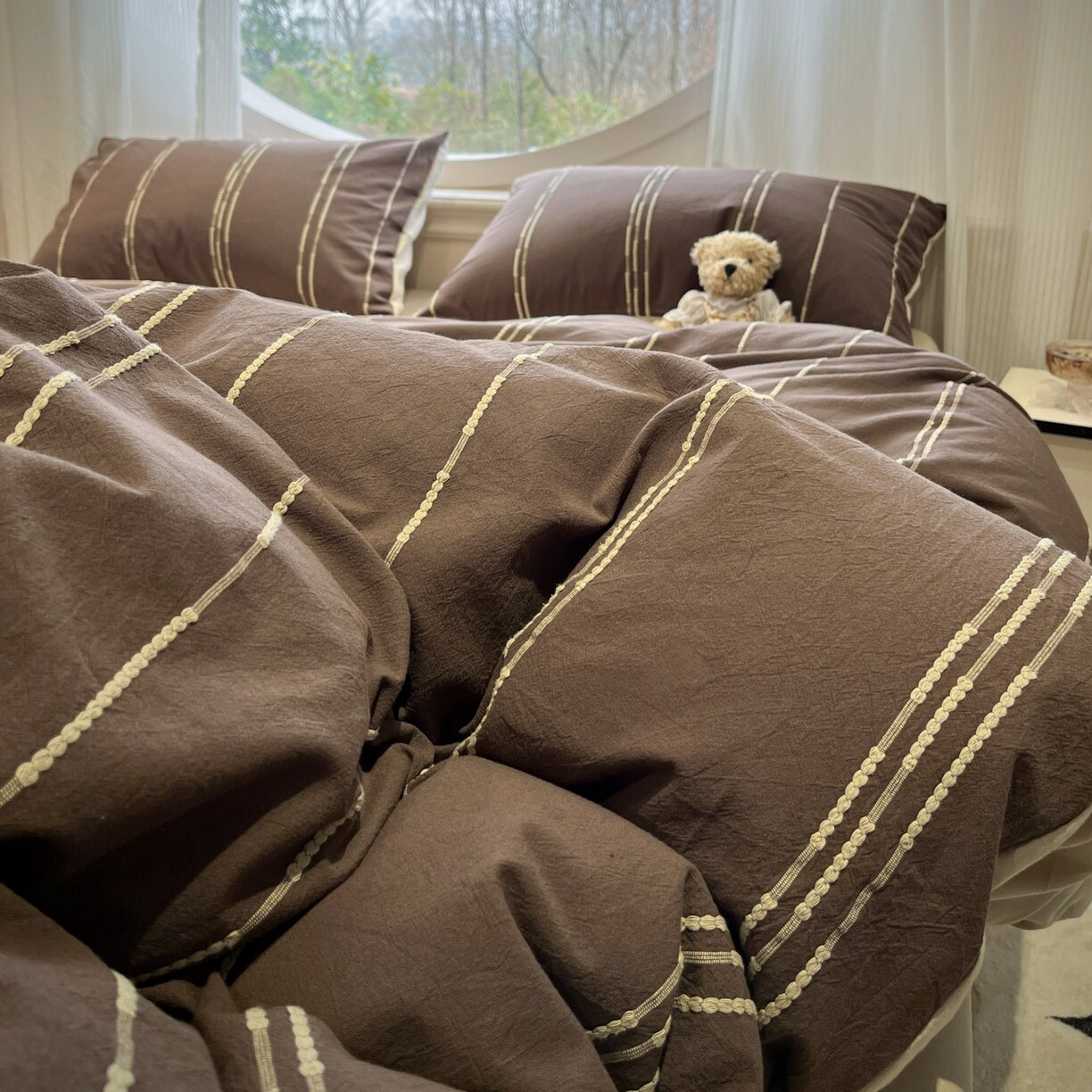 A类全棉纯棉复古美拉德色织提花四件套条纹床品套件简约风被套