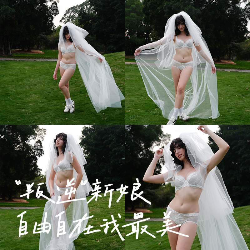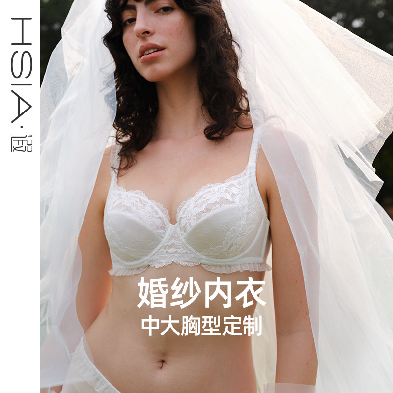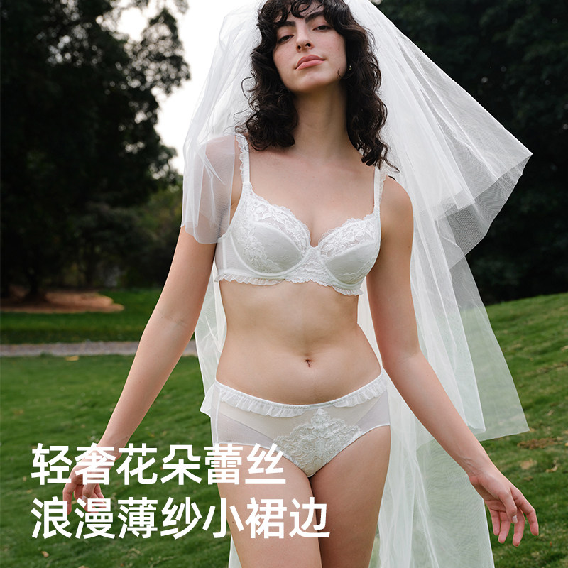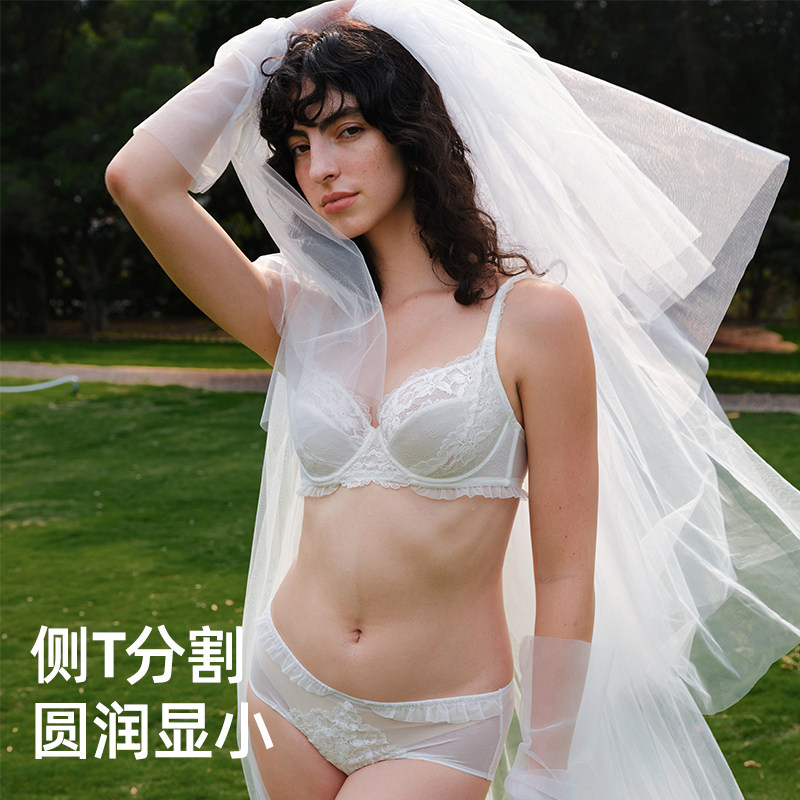 【叛逆新娘-白山茶】遐白色婚纱内衣女夏超薄防凸点大胸显小文胸