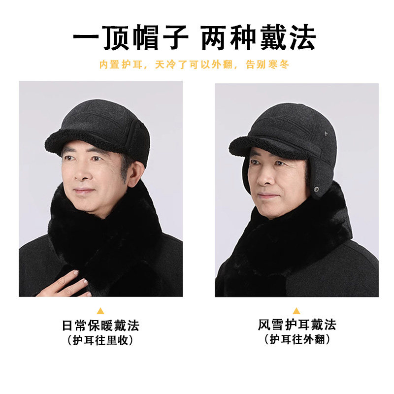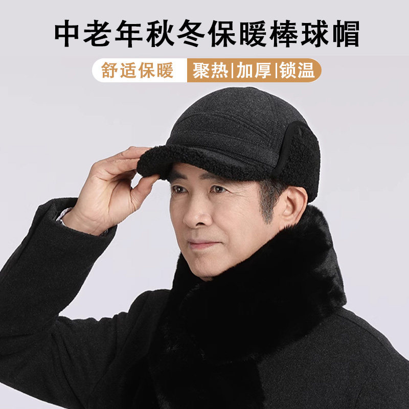 帽子男士冬季中老年人爸爸保暖棒球帽老人爷爷护耳老头棉帽加绒