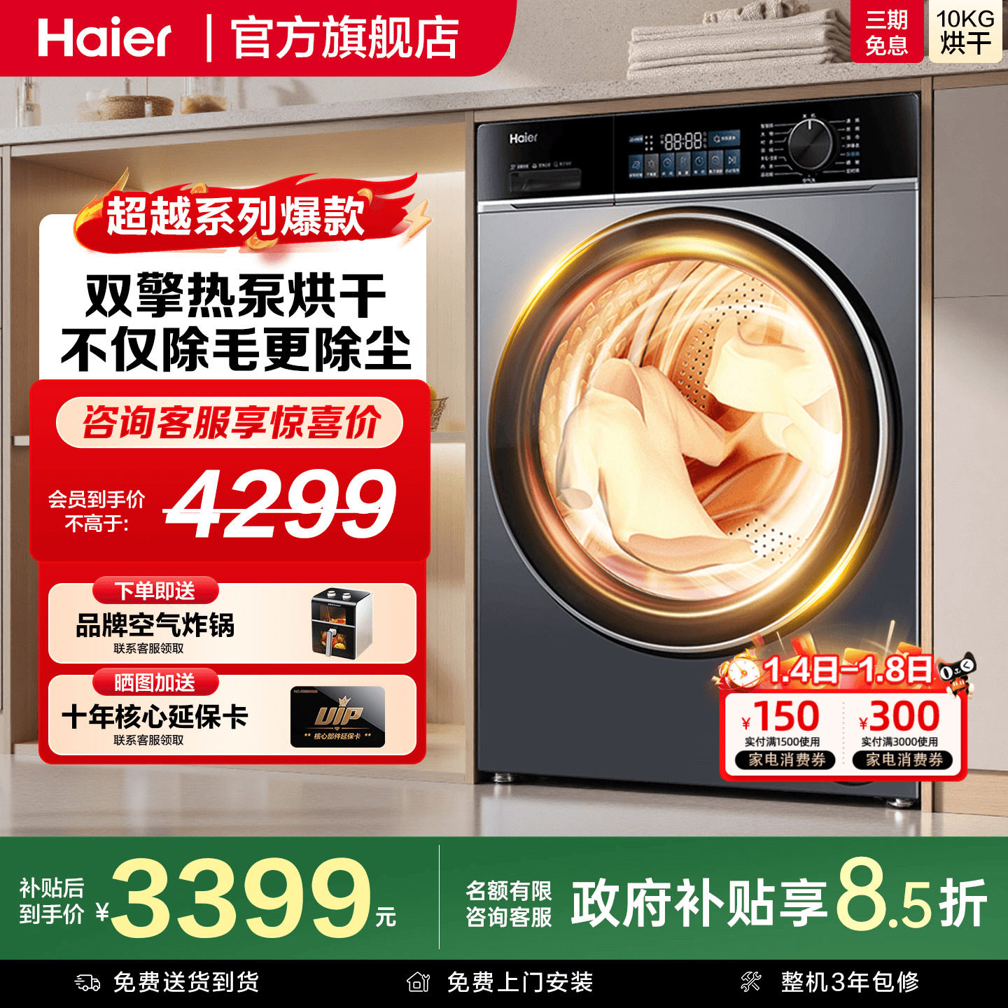 焕新补贴 | 海尔双擎热泵变频烘干干衣机超薄嵌入除尘官方旗舰53E