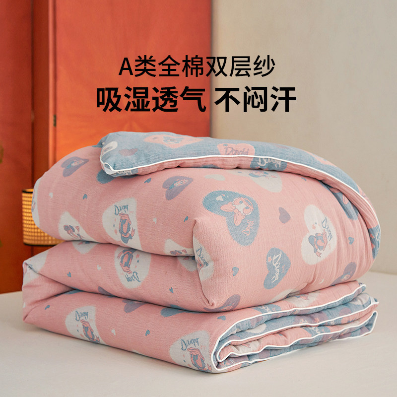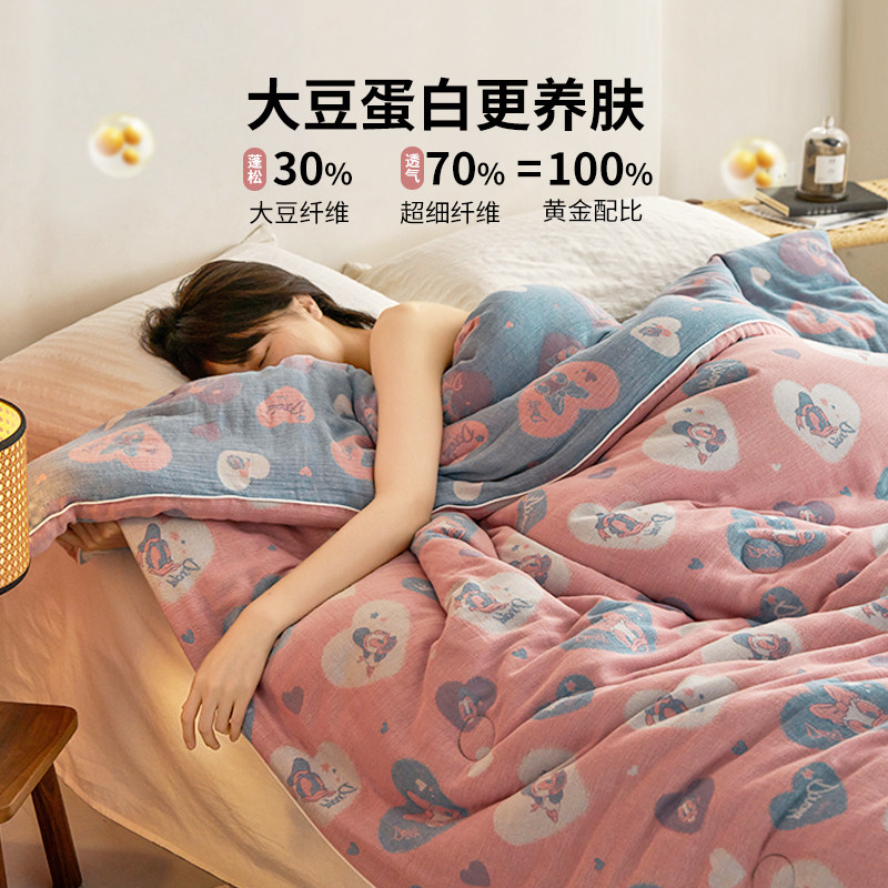 如奕A类母婴级双层纱大豆被冬被透气双人全棉春秋被子空调被棉被