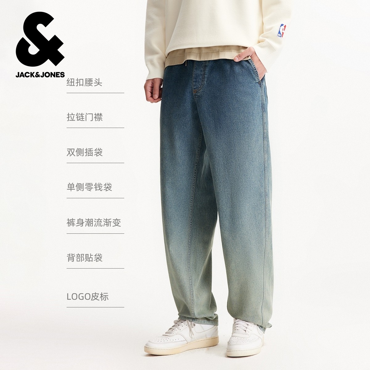 杰克琼斯春季男装牛仔裤廓形松紧抽绳双侧插袋时尚百搭潮流下装款
