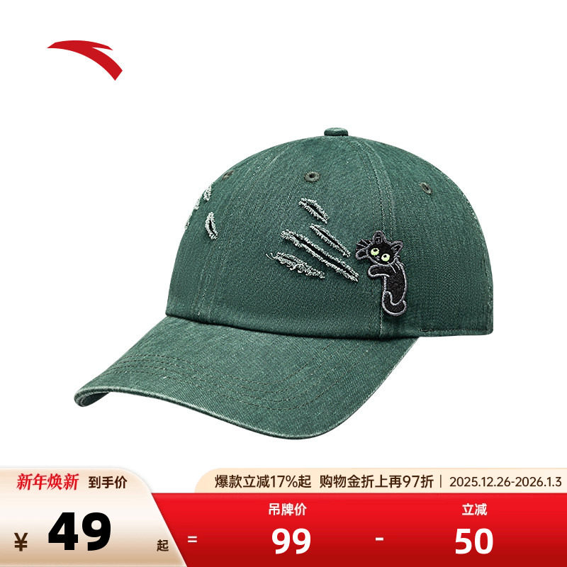 安踏小黑猫系列运动帽棒球帽秋冬季简约百搭休闲潮流遮阳防晒帽