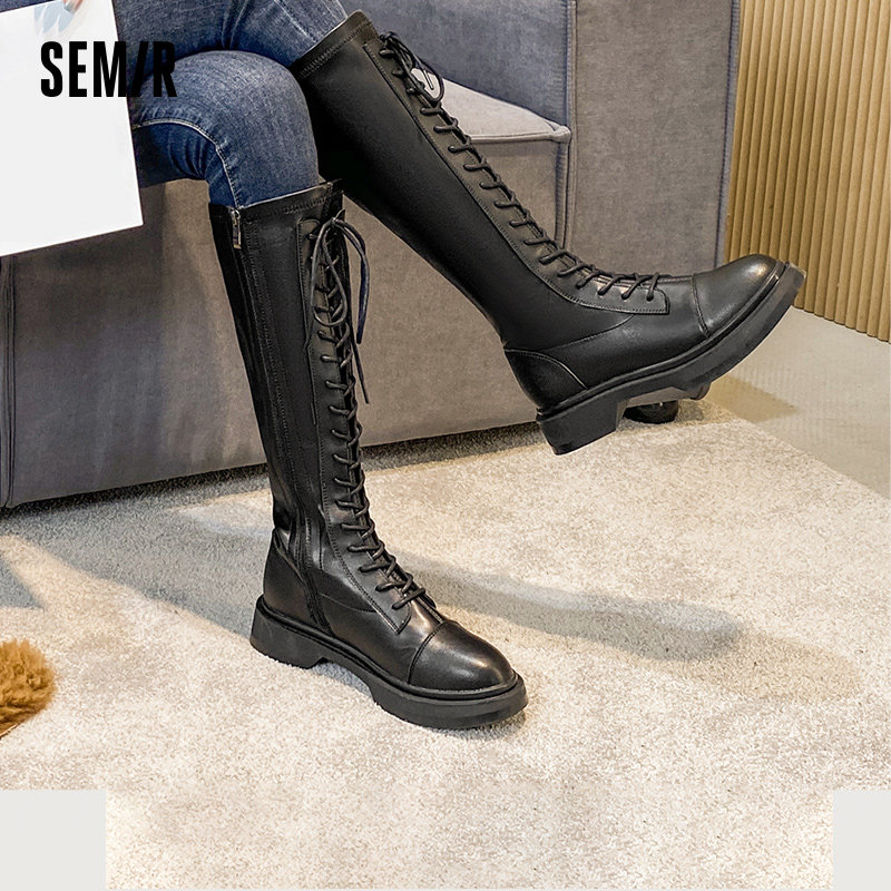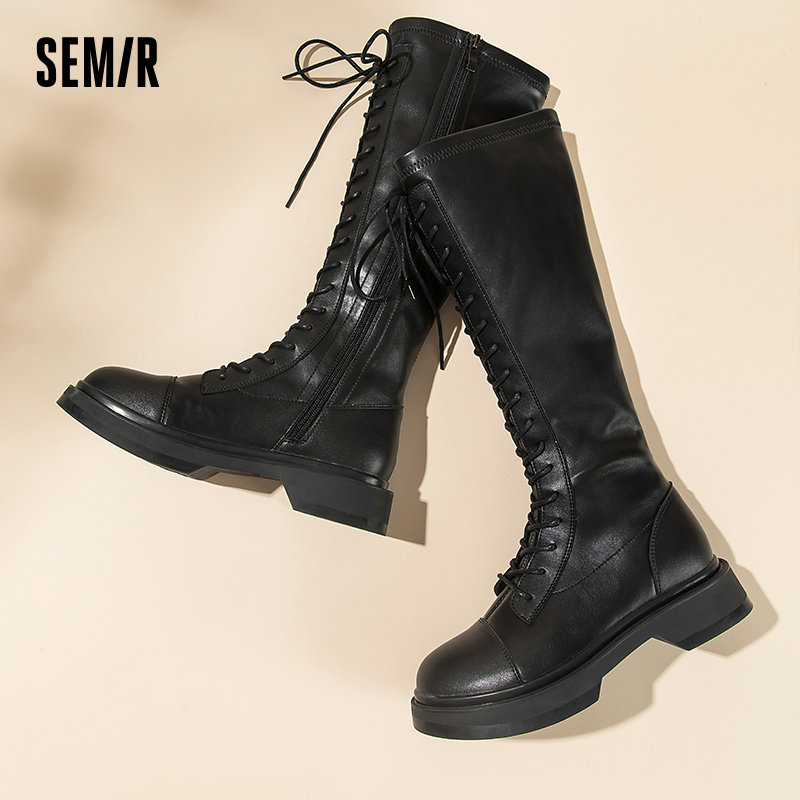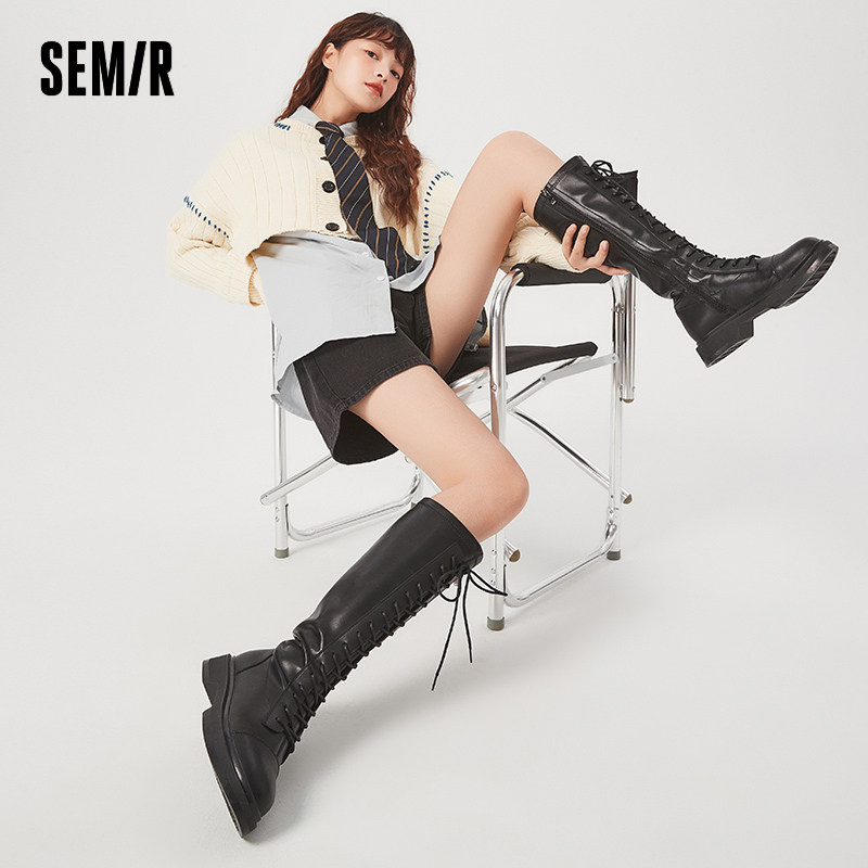 Semir女鞋骑士靴秋冬新款过膝高筒绑带靴烟囱靴时装单靴马丁靴女