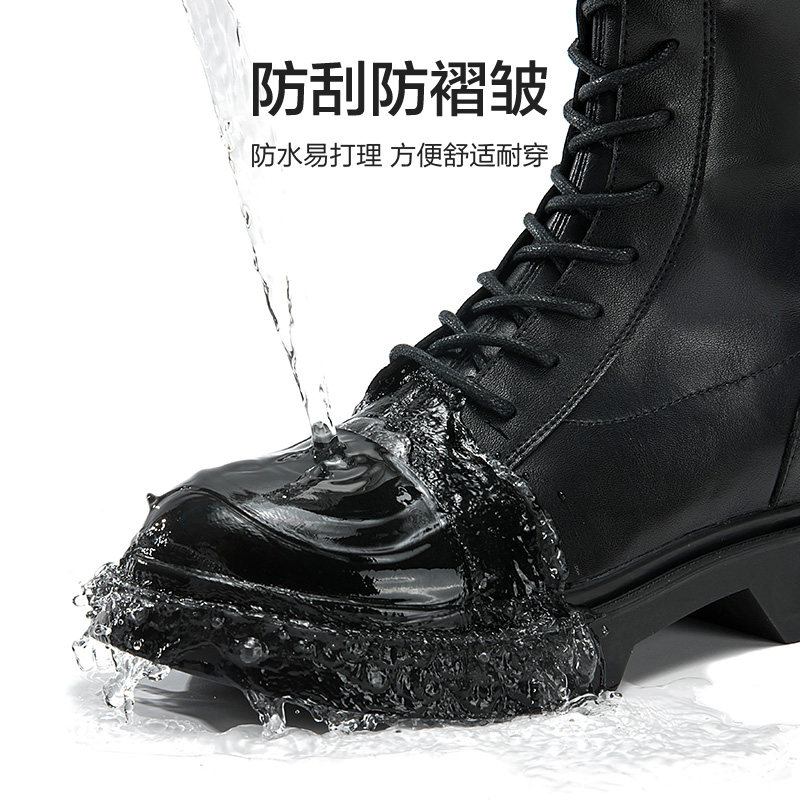 高筒系带骑士靴,内侧增加拉链设计方便穿脱