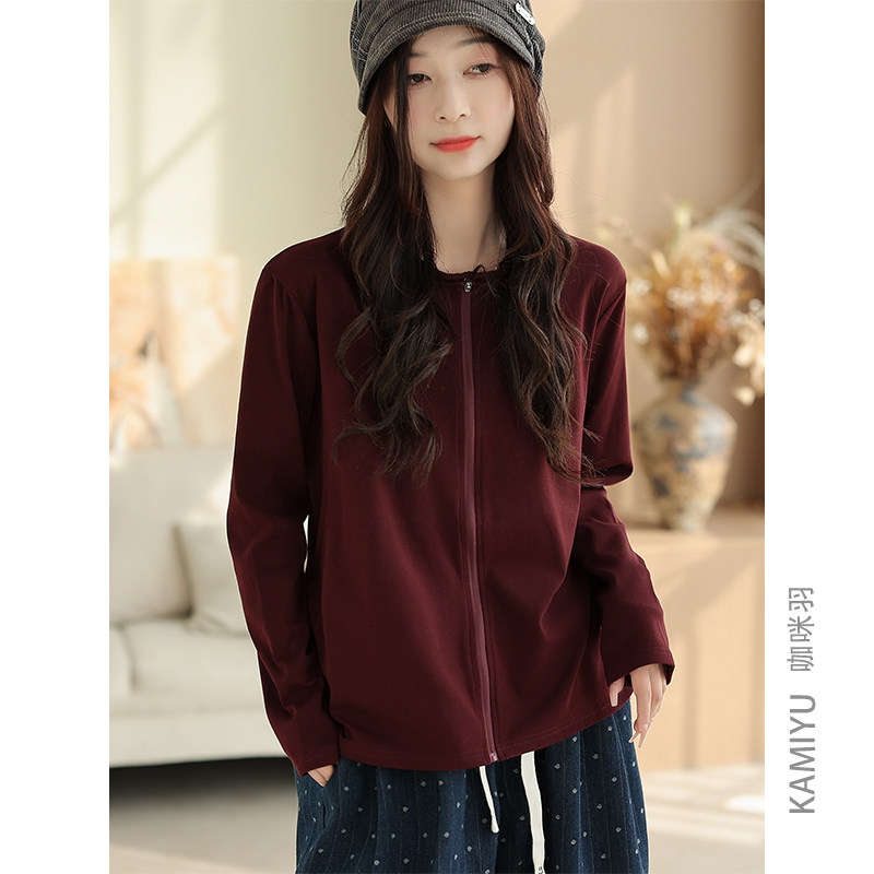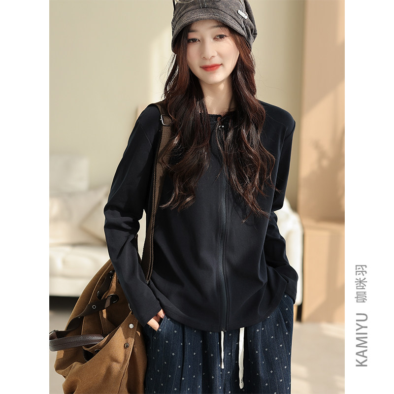 咖咪羽秋装外套女新款文艺休闲纯色女士百搭简约复古显瘦女装上衣