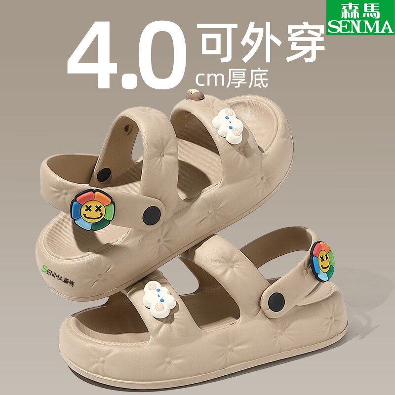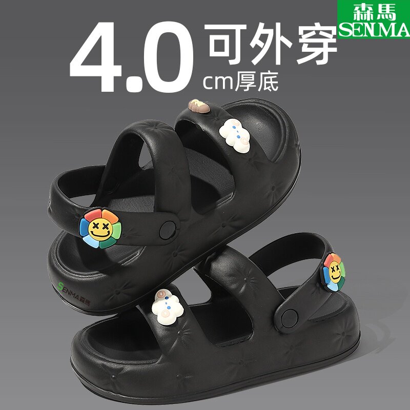 SENMA/森马洞洞鞋2025新款爆款夏防滑厚底踩屎感外穿包头拖鞋乐购