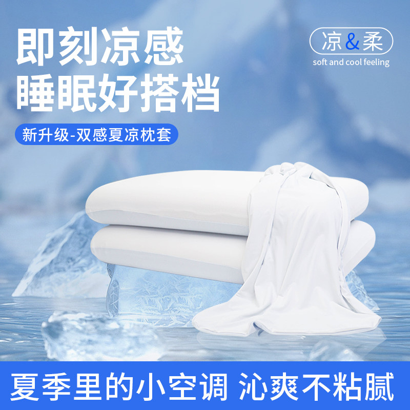 可水洗冰丝单双人枕套夏天枕头套凉感枕芯内胆套一对装家用深睡