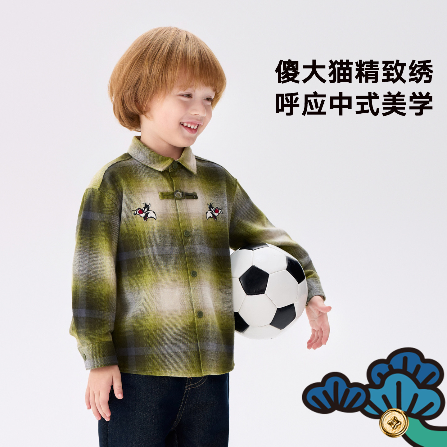 马拉丁童装衬衫26春新款男小童乐一通联名萌趣精致刺绣长袖衬衫