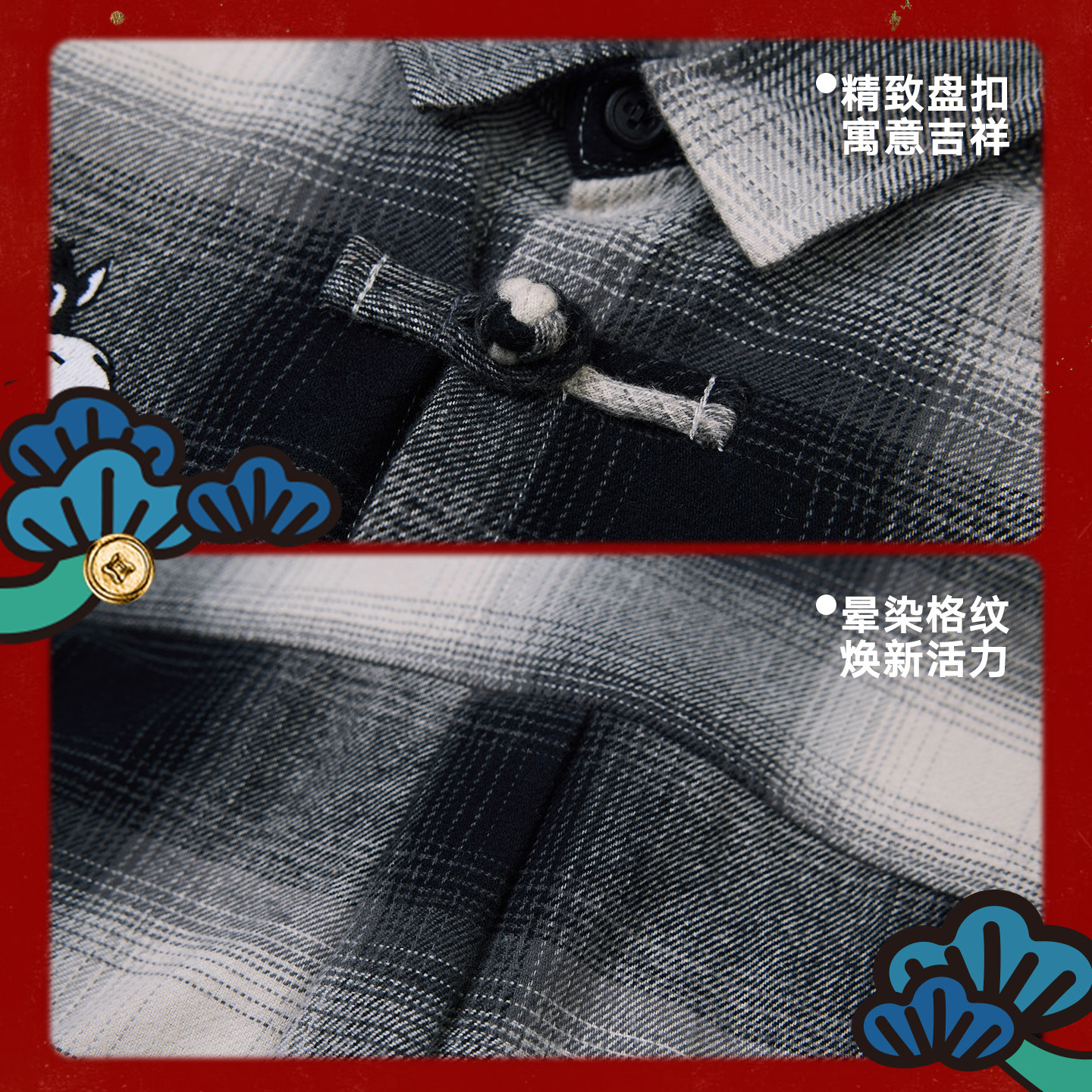 新中式元素 萌趣精致刺绣 百搭格纹衬衫