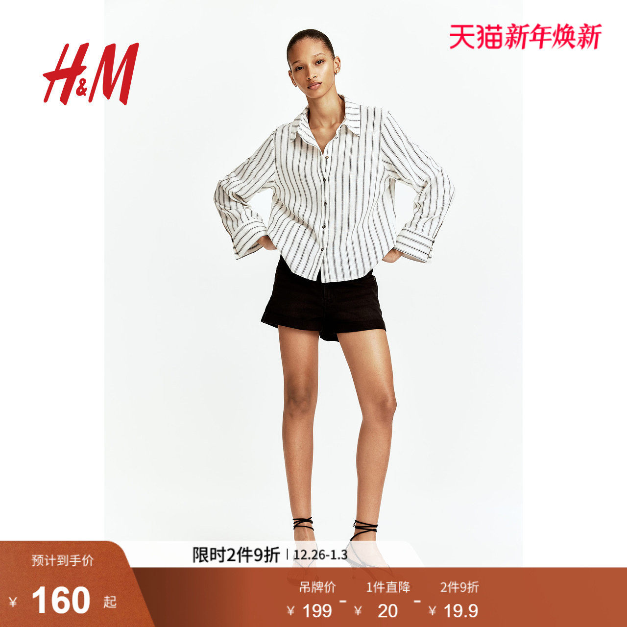 HM女装衬衫2025冬季新款新款休闲透气松驰感亚麻混纺衬衫1277600