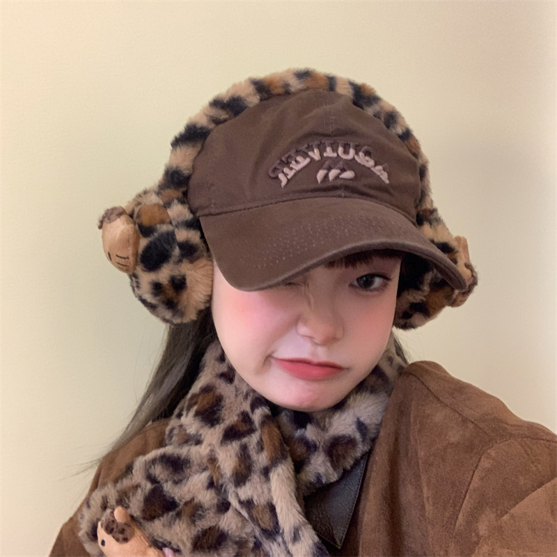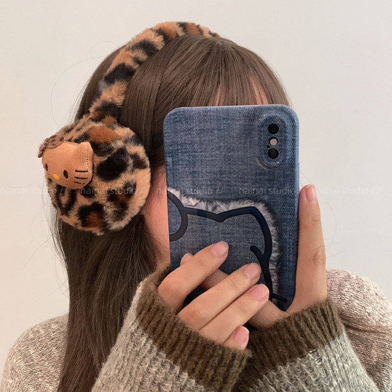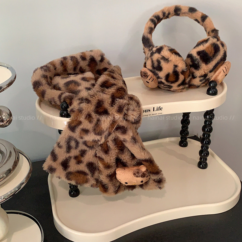 豹纹kitty围巾+耳罩~秋冬毛绒KT猫咪y2k甜酷辣妹可爱保暖耳暖围脖