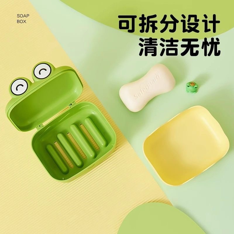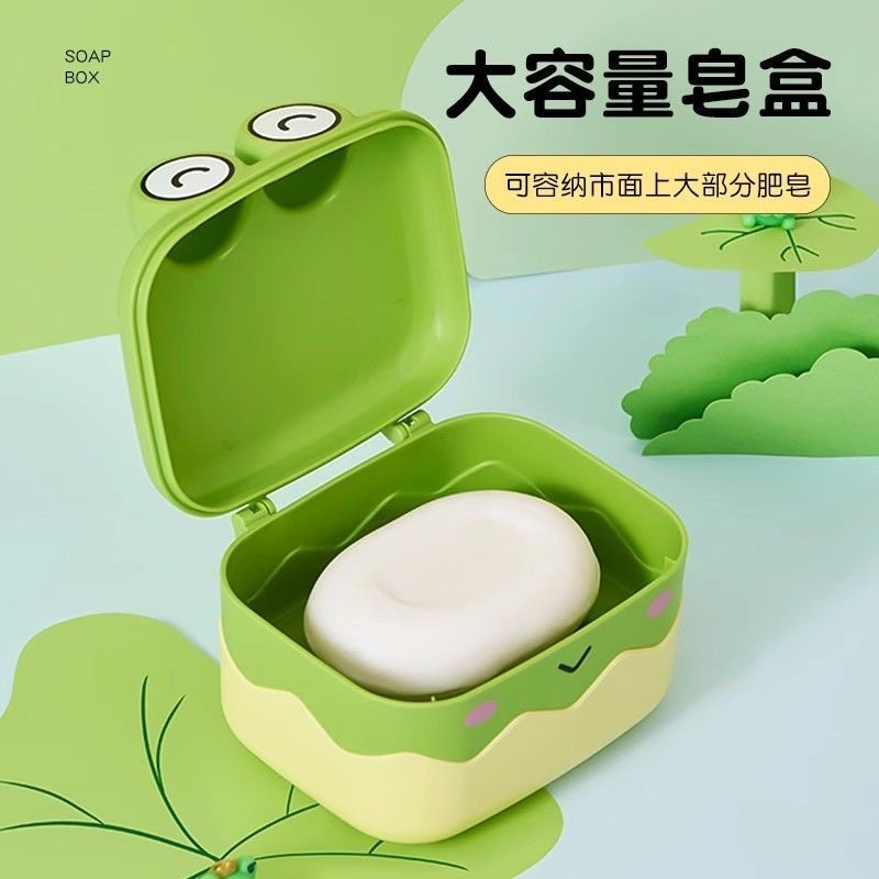 家用皂盒沥水肥皂盒带盖香皂盒卡通小青蛙宿舍手工双层香皂收纳盒