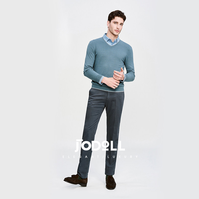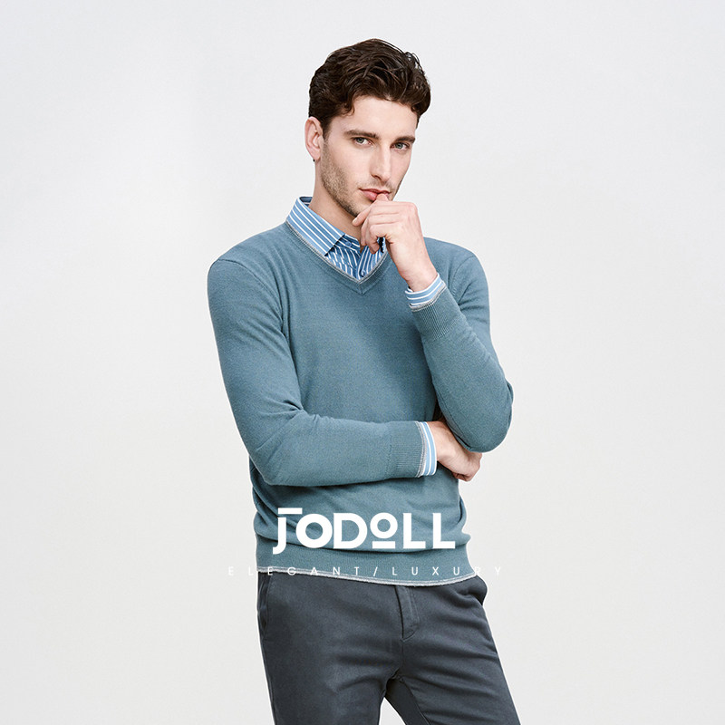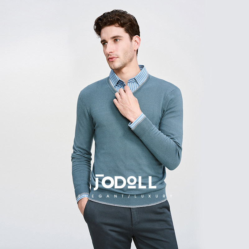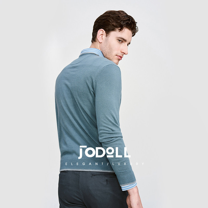 JODOLL乔顿撞色V领羊毛衫冬季舒适百搭休闲山羊绒男保暖打底毛衣
