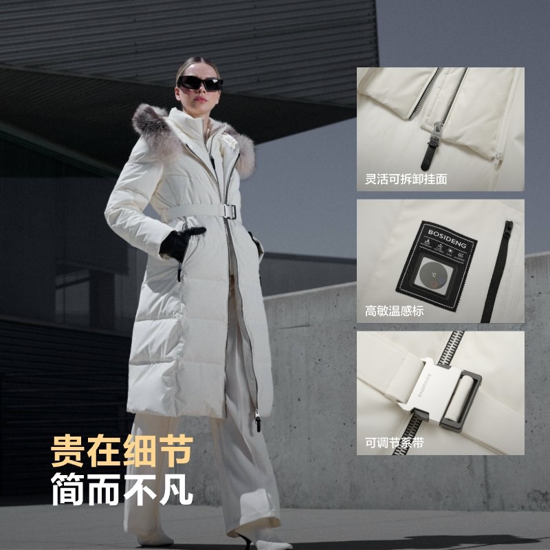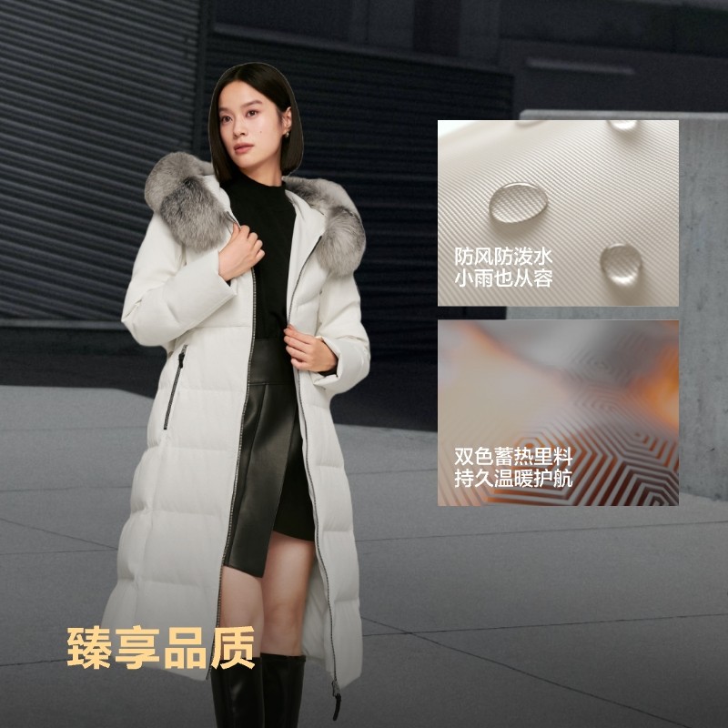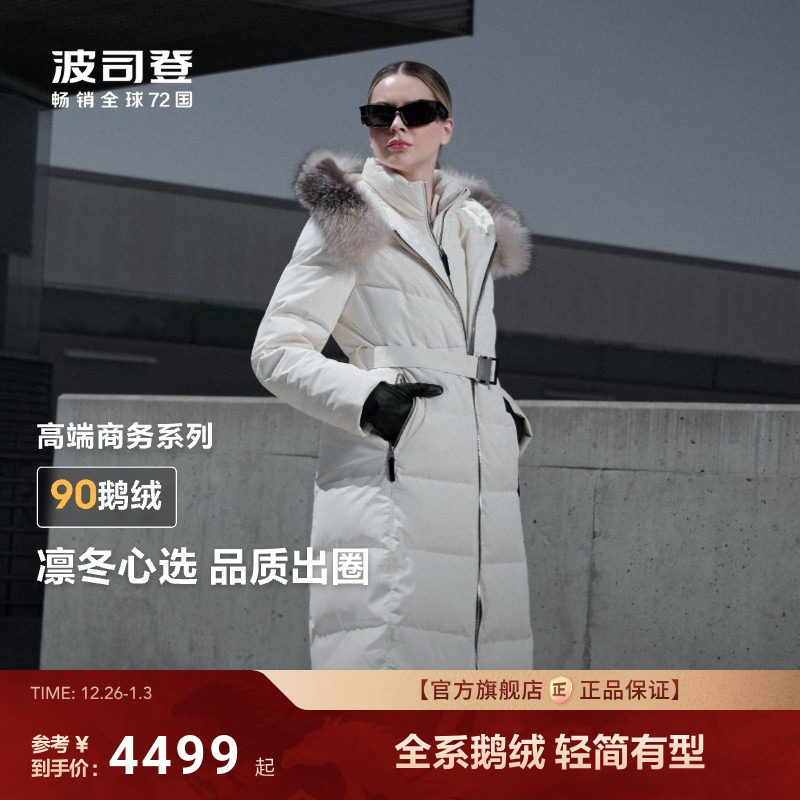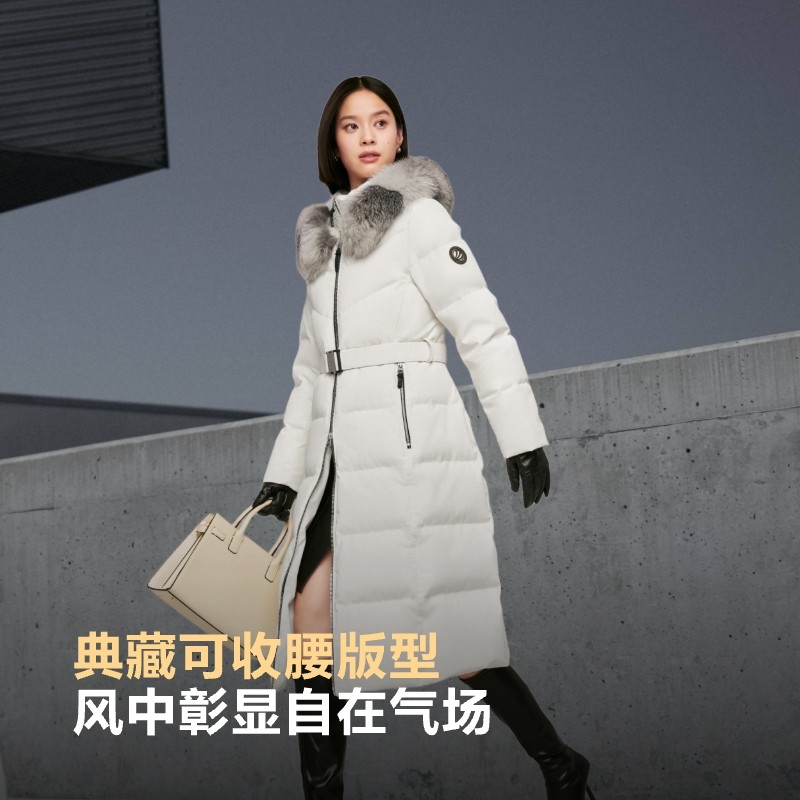 银狐毛领 波司登冬季新款90鹅绒羽绒服女长款高端商务收腰显瘦