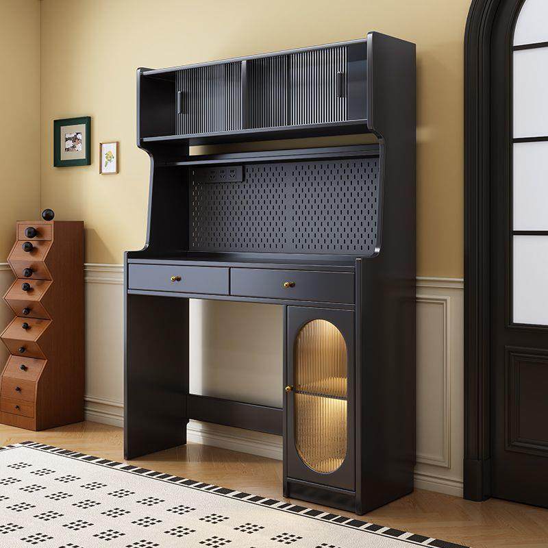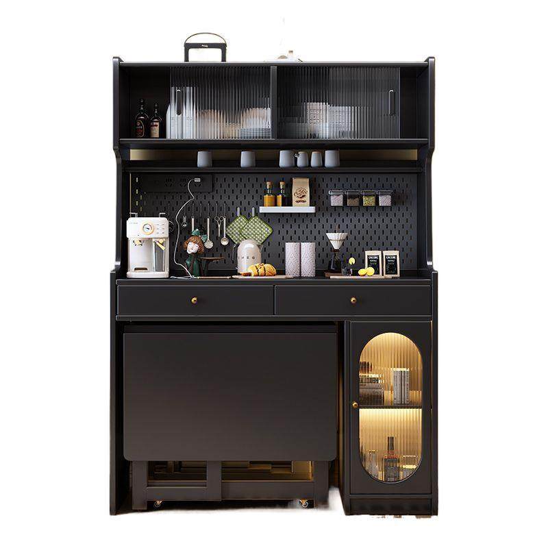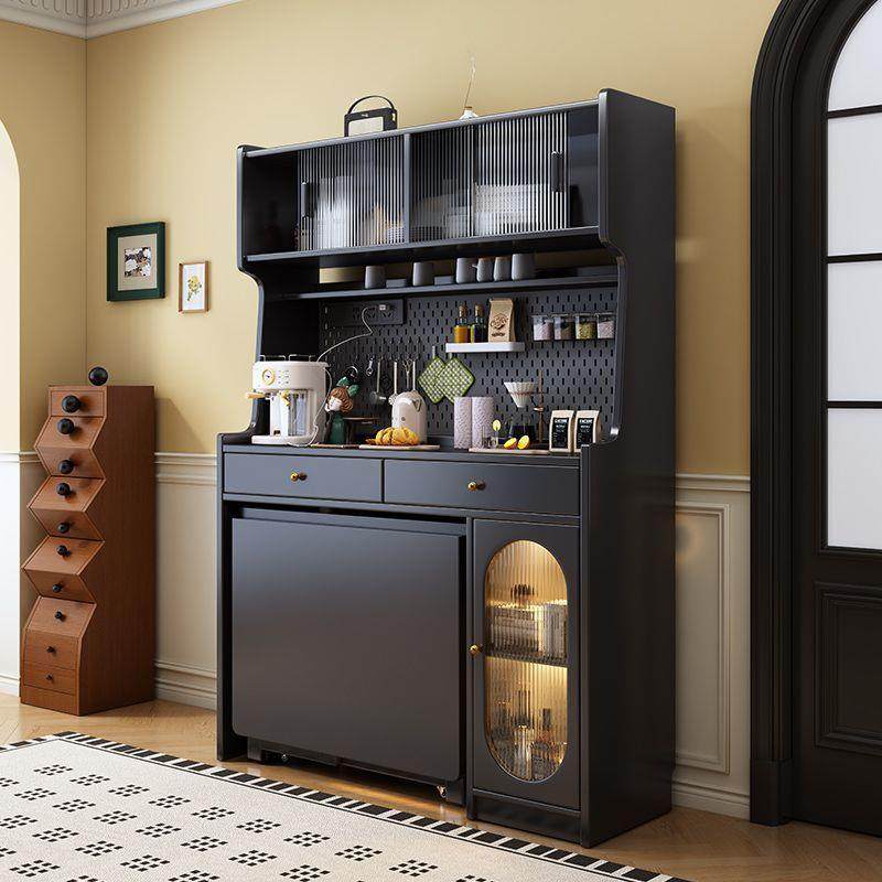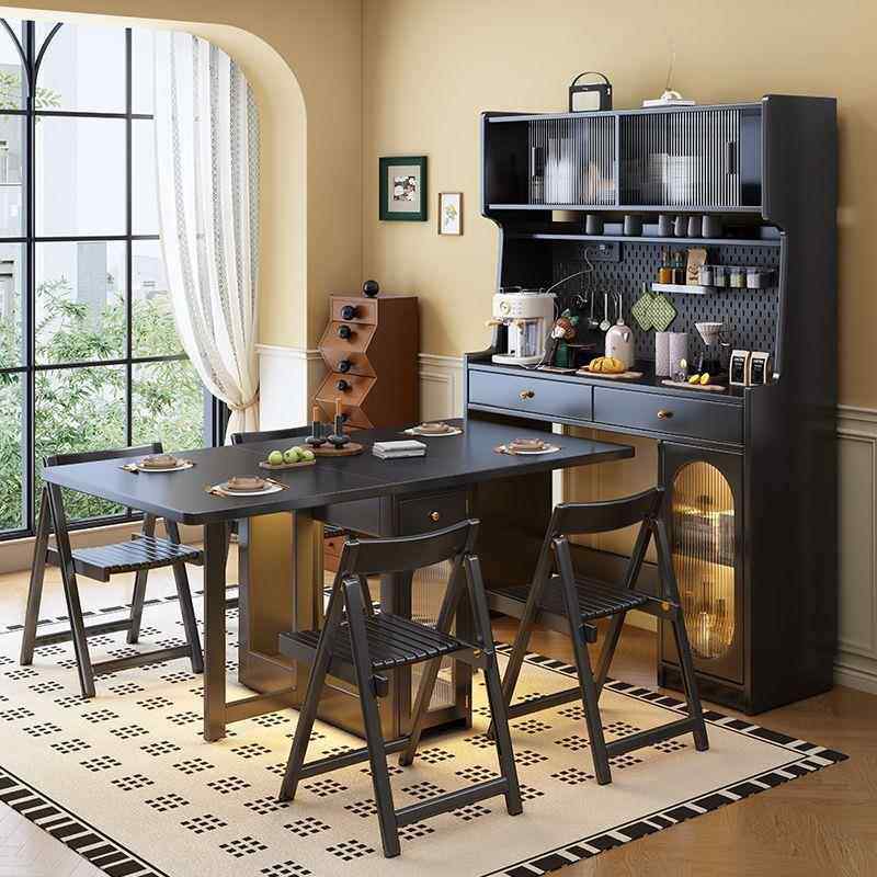 法式复古实木餐边柜折叠餐桌一体黑色中古风家用小户型可折叠靠墙