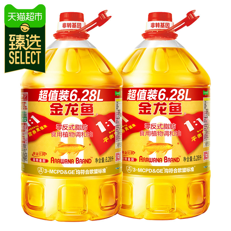 【臻选】金龙鱼非转基因黄金比例食用植物调和油6.28L*2桶