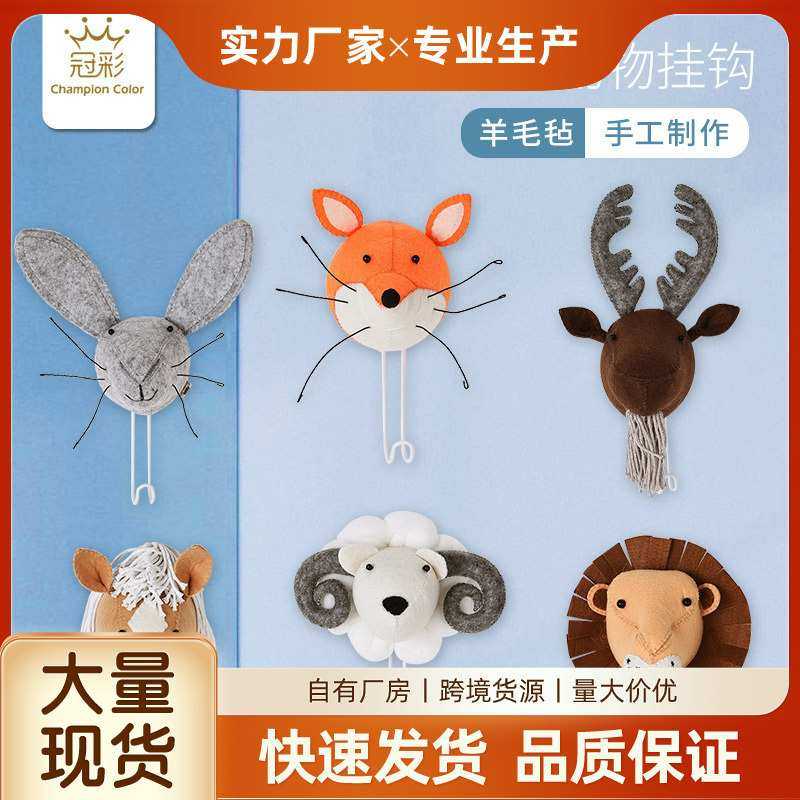 创意大象动物头羊毛毡挂钩北欧风格装饰品壁挂儿童房单钩墙饰壁饰