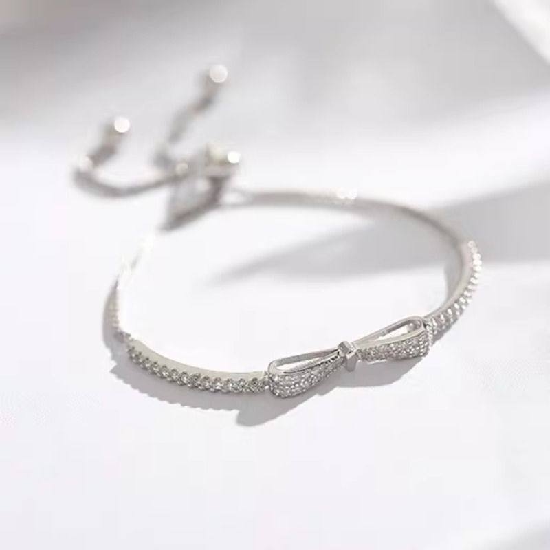 韩版镶钻超闪可抽拉蝴蝶结手链女时尚简约轻奢精致个性百搭手饰品