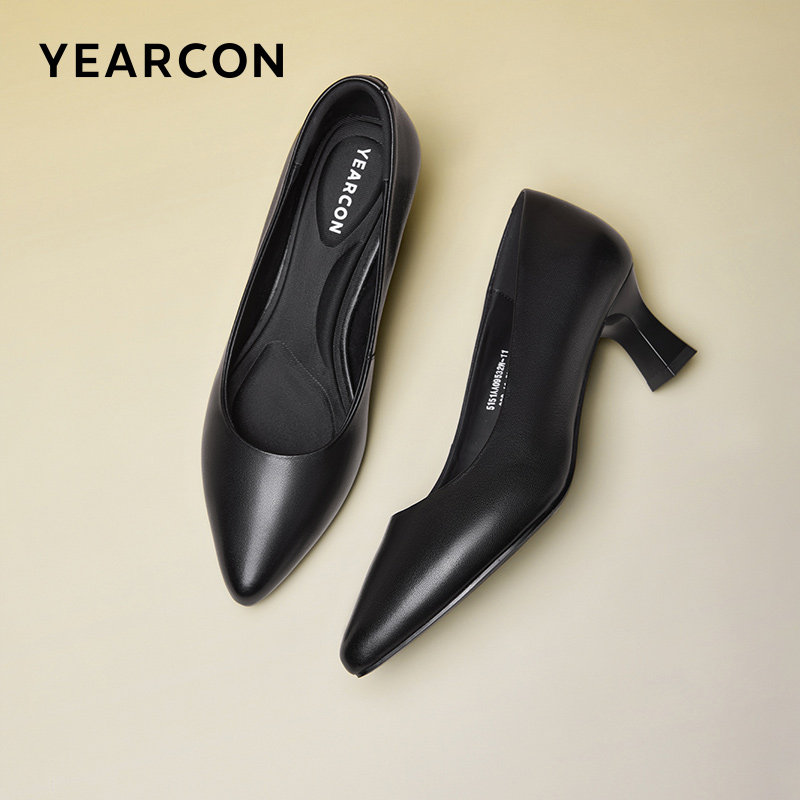 意尔康女鞋黑色单鞋真皮尖头高跟气质通勤女士职业工作鞋面试皮鞋
