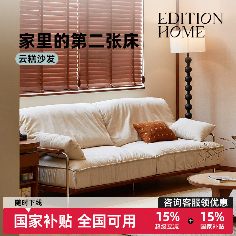 奶油风布艺沙发客厅2025新款小户型家用可拆洗三人位直排云朵沙发