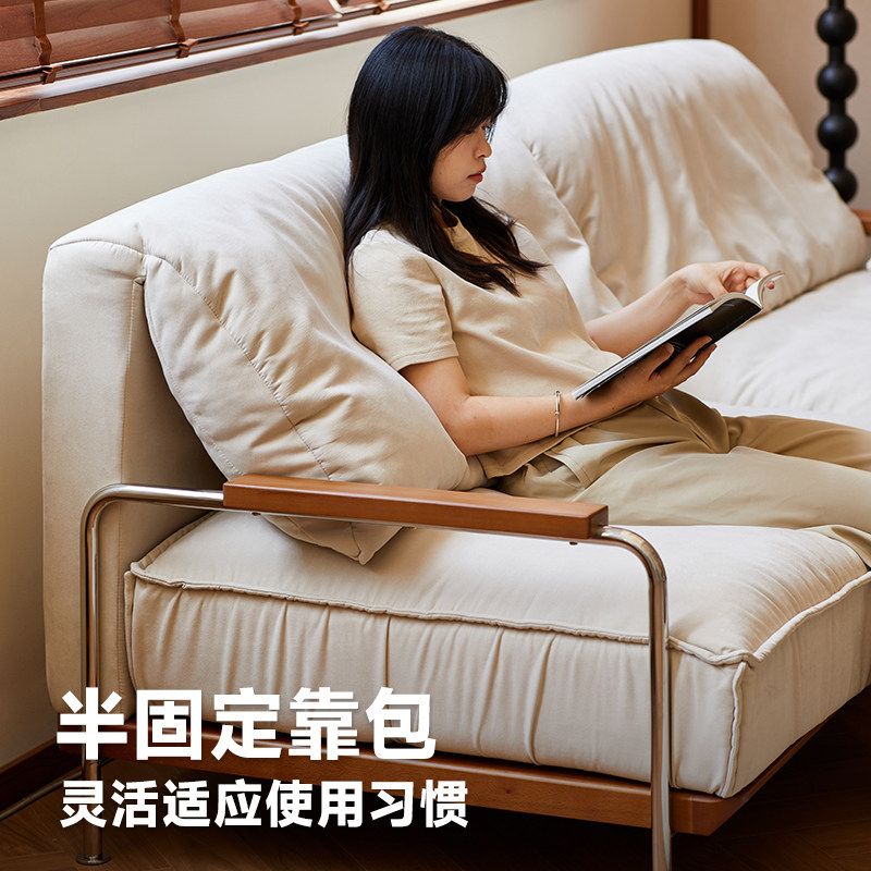 三梦中古风布艺沙发小户型折叠两用压缩复古单双人模块布丁沙发床