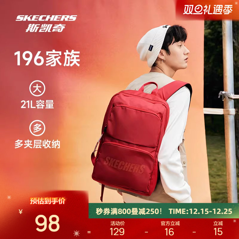 斯凯奇书包大容量电脑包运动旅行大学生双肩包女生初中高中生背包