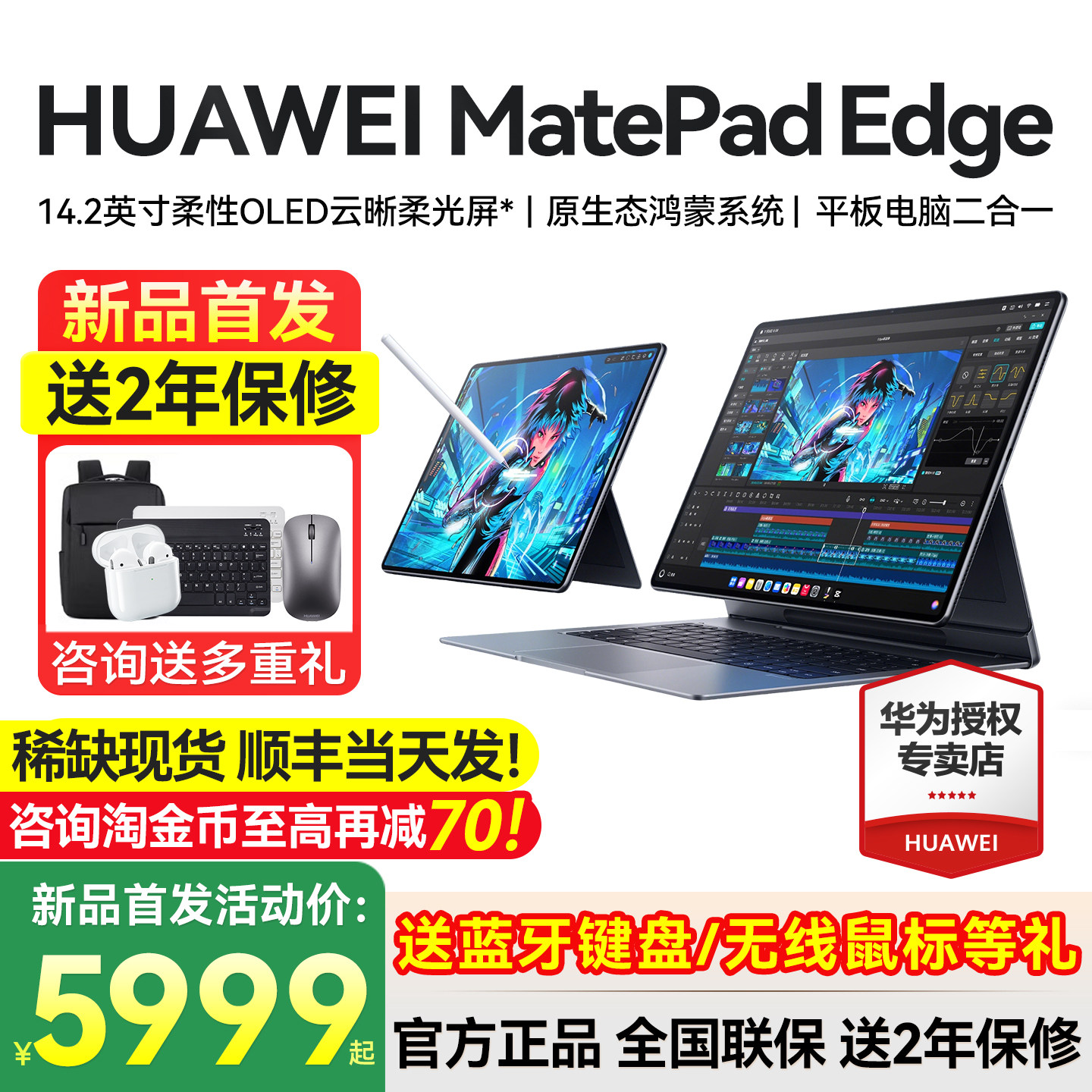 【新品现货顺丰急发】华为MatePadEdge鸿蒙平板电脑二合一官方旗舰正品官网办公华为平板笔记本matepad edge