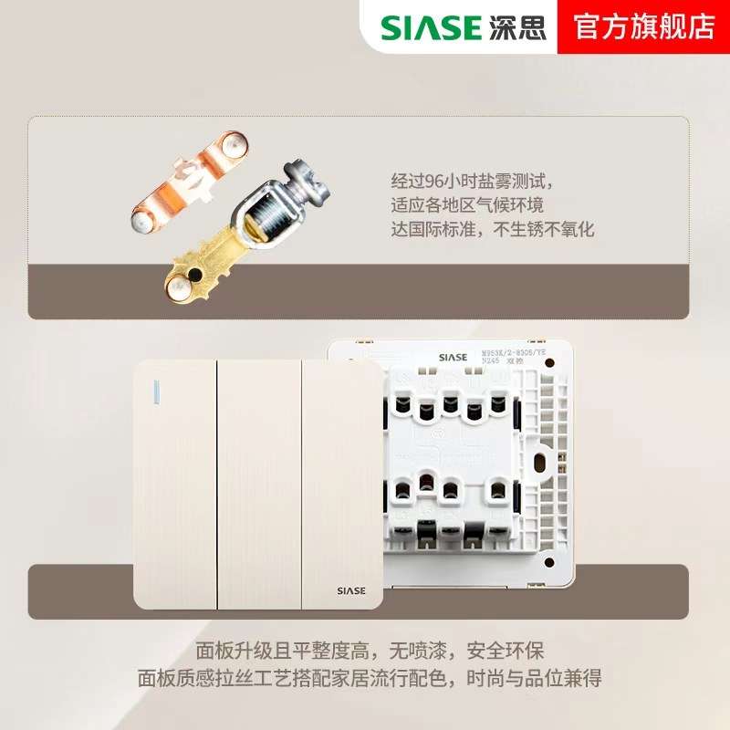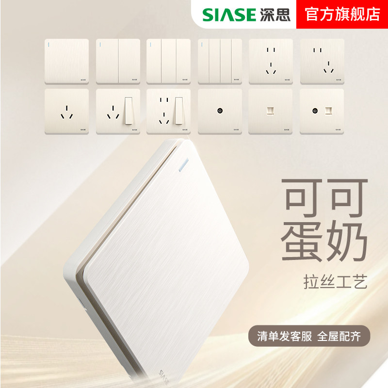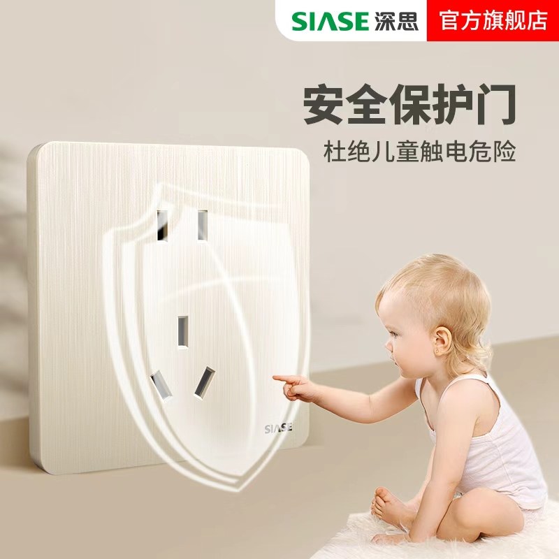 深思哑光免喷涂防刮开关插座面板16a五孔家用奶油黄拉丝金色224