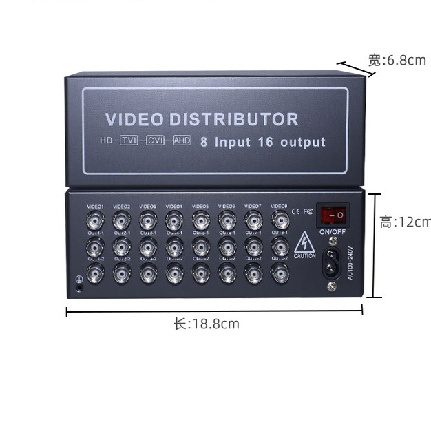 监控摄像机BNC8进16出同轴高清视频分配器分支分屏器1入2出放大器