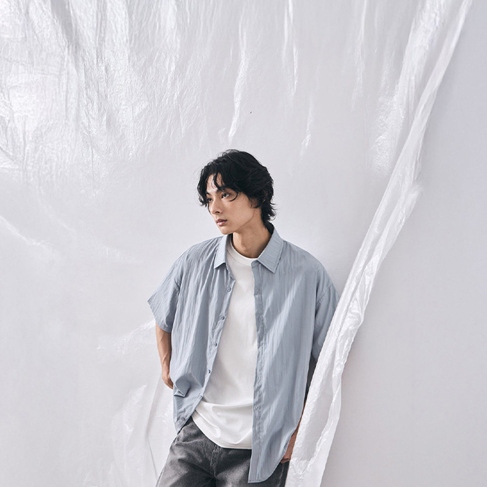 QUEENSHOP 2025春夏新品男装基本素面刷刷短袖衬衫01025554