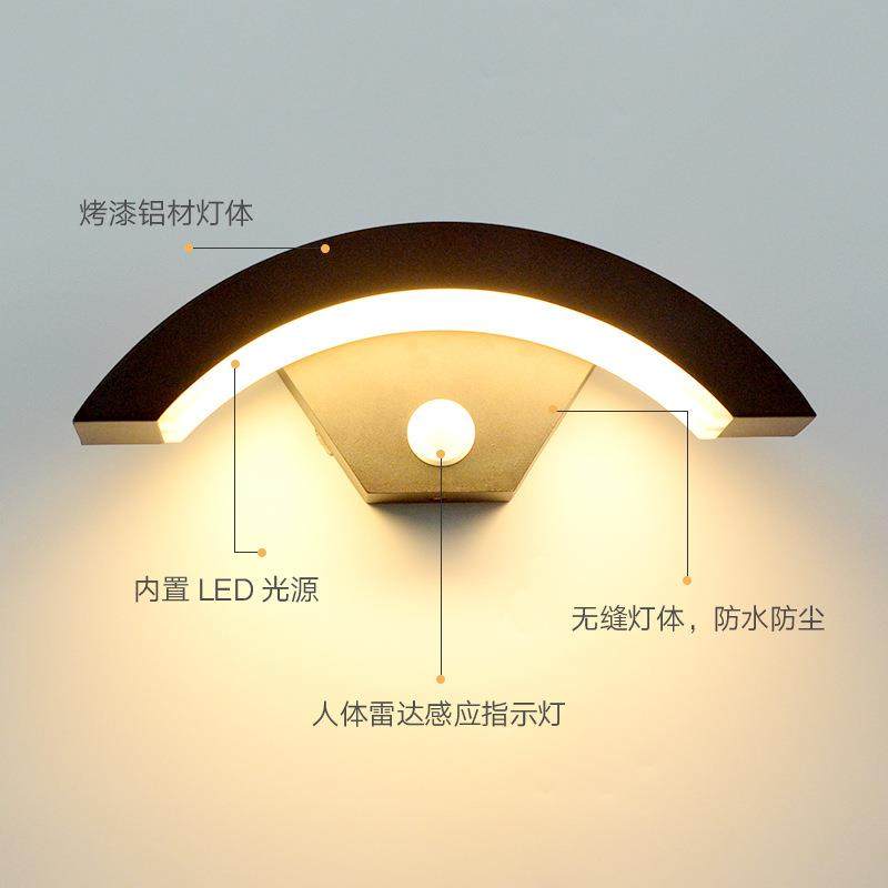 led户外防水人体感应壁灯庭院简约创意室外阳台门口月亮形墙壁灯