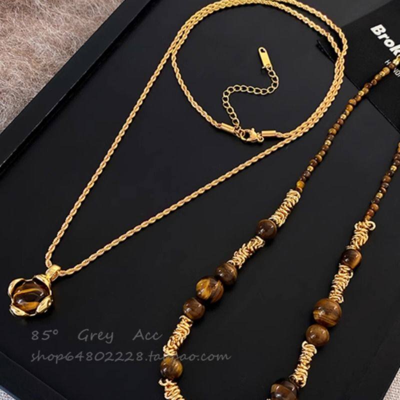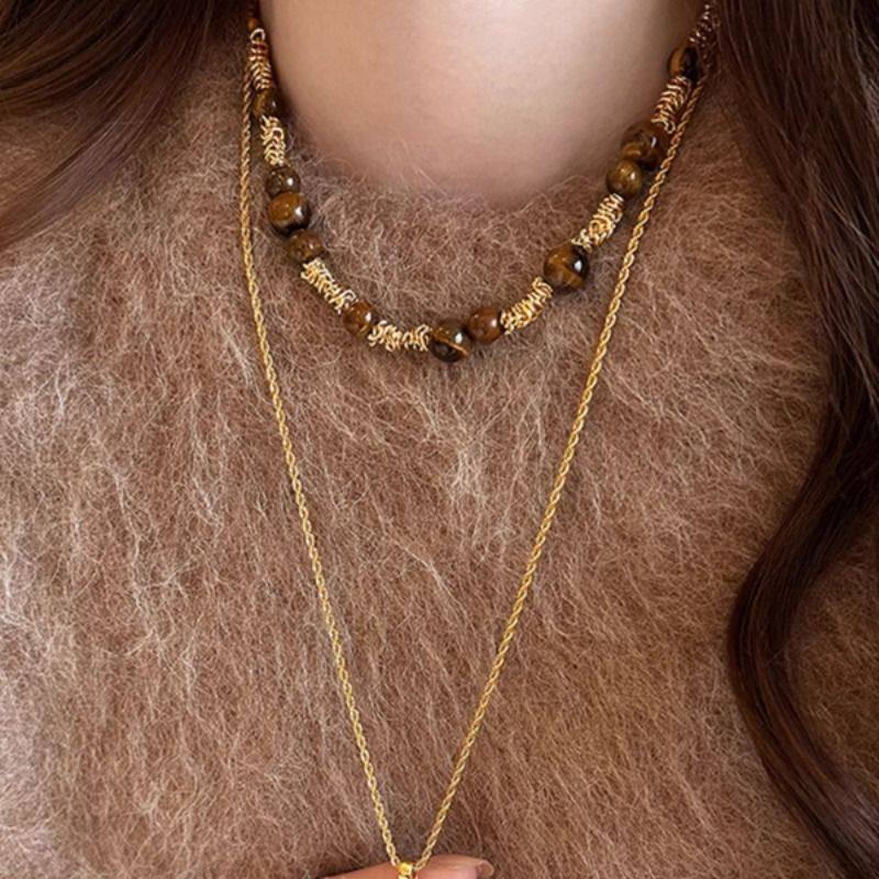 复古气质美拉德虎眼石款吊坠项链女秋冬长款毛衣链高级感颈链爱心