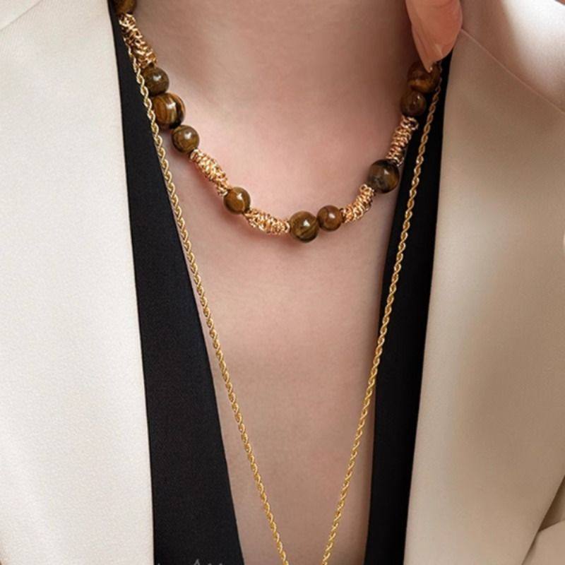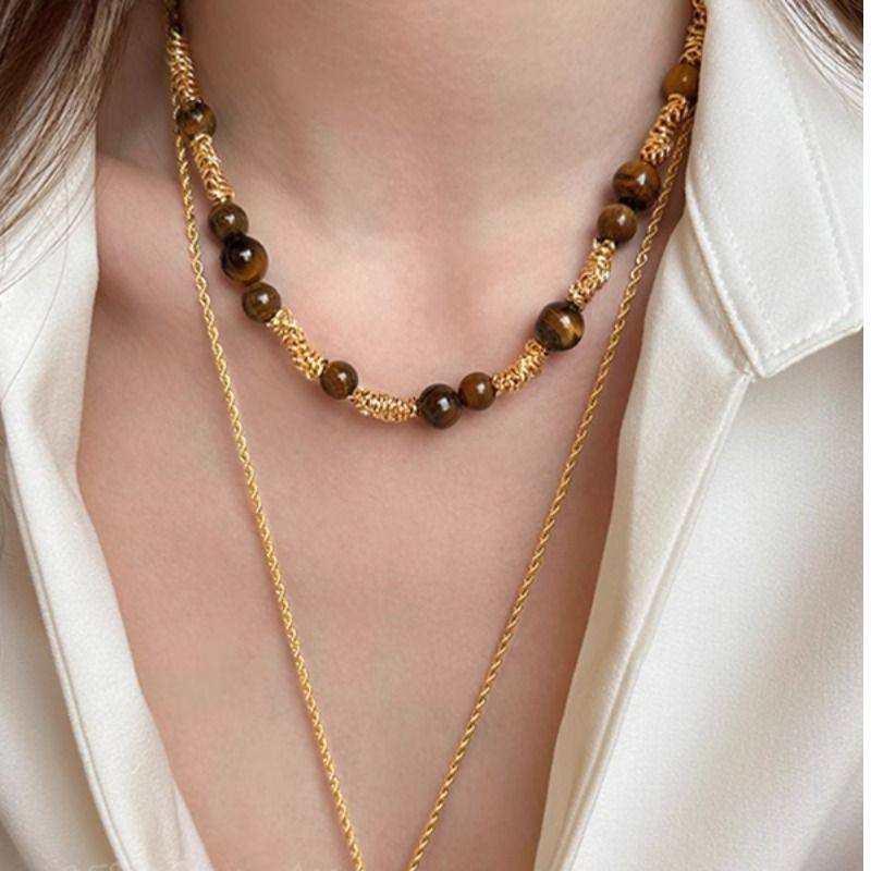 美拉德虎眼石长款毛衣链女款2025新款轻奢高级感项链秋冬装饰配饰