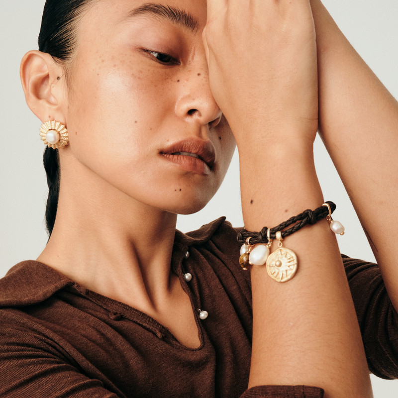 徐若晗同款lost in echo春季新款时髦珍珠玛瑙皮绳编织手链女