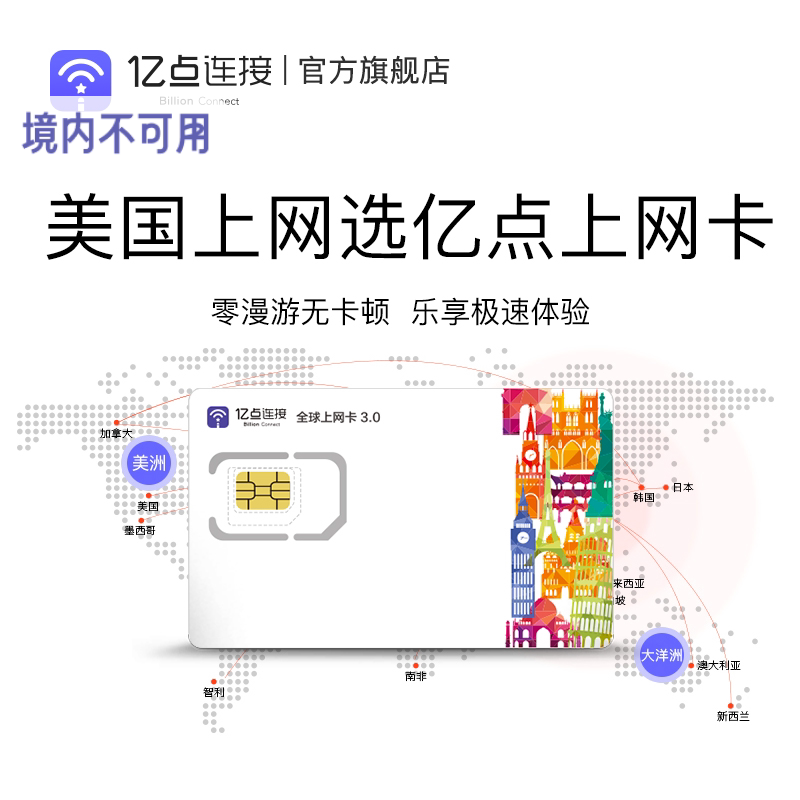 亿点美国电话卡4G高速流量上网卡纽约曼哈顿旅游SIM卡