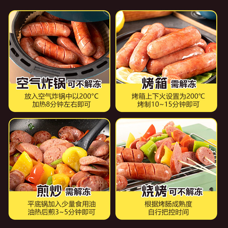 尊乐香肠芝士蜜汁爆汁火山石烤肠冷冻早餐速食空气炸锅火锅食材