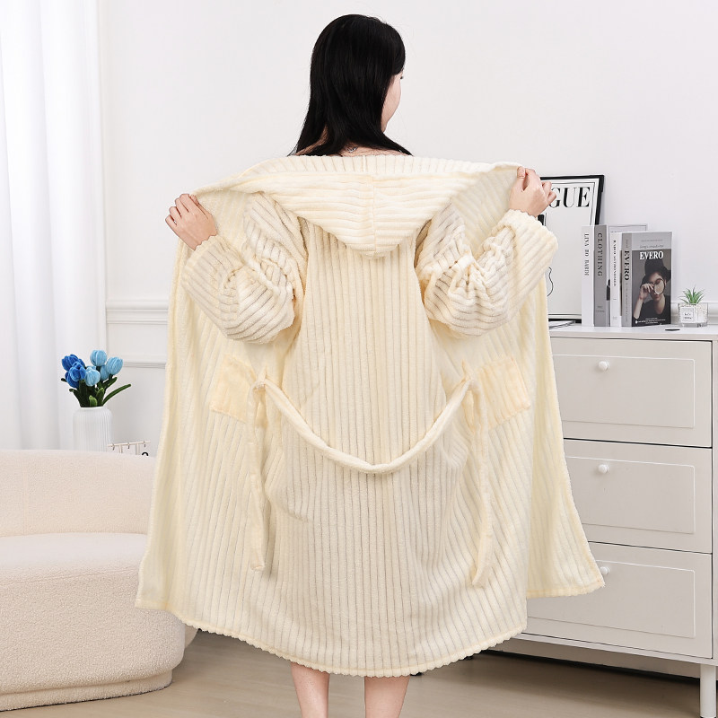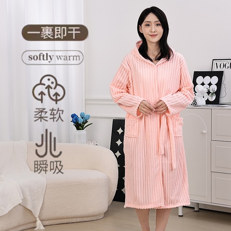 秋冬浴袍可穿浴巾女家用珊瑚绒吸水柔软速干浴裙洗澡睡袍睡衣连帽
