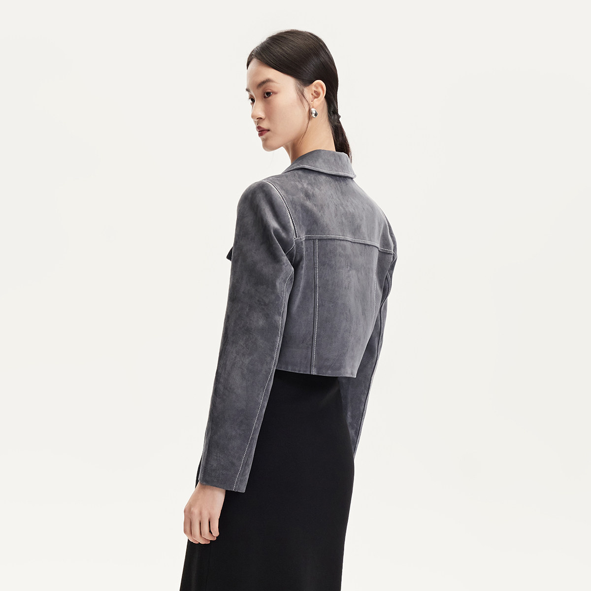 Eland衣恋皮衣女纯色带拉链长袖翻领外套2025冬季新款