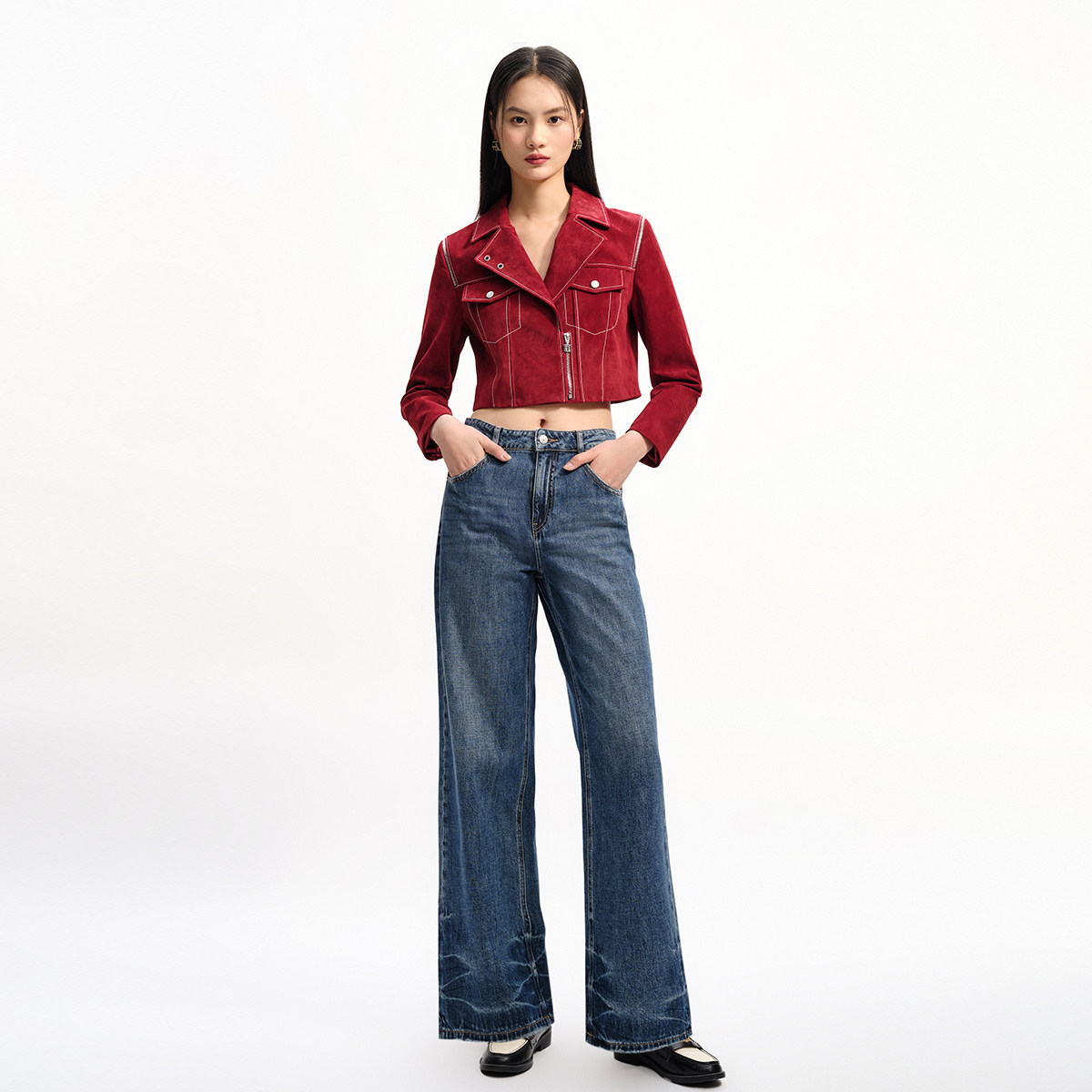 COCOBELLA安可拉红复古PU短款环保皮衣女秋质感哑光夹克PU3098-2