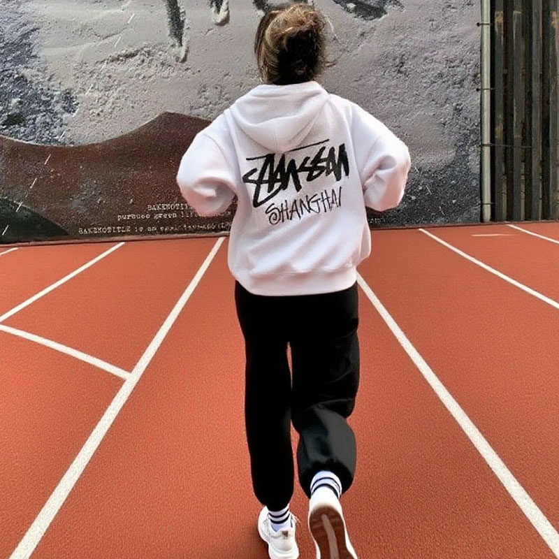 潮牌斯图西Stu卫衣连帽刺绣外贸运动套头上衣冬加绒白色毛圈黑色