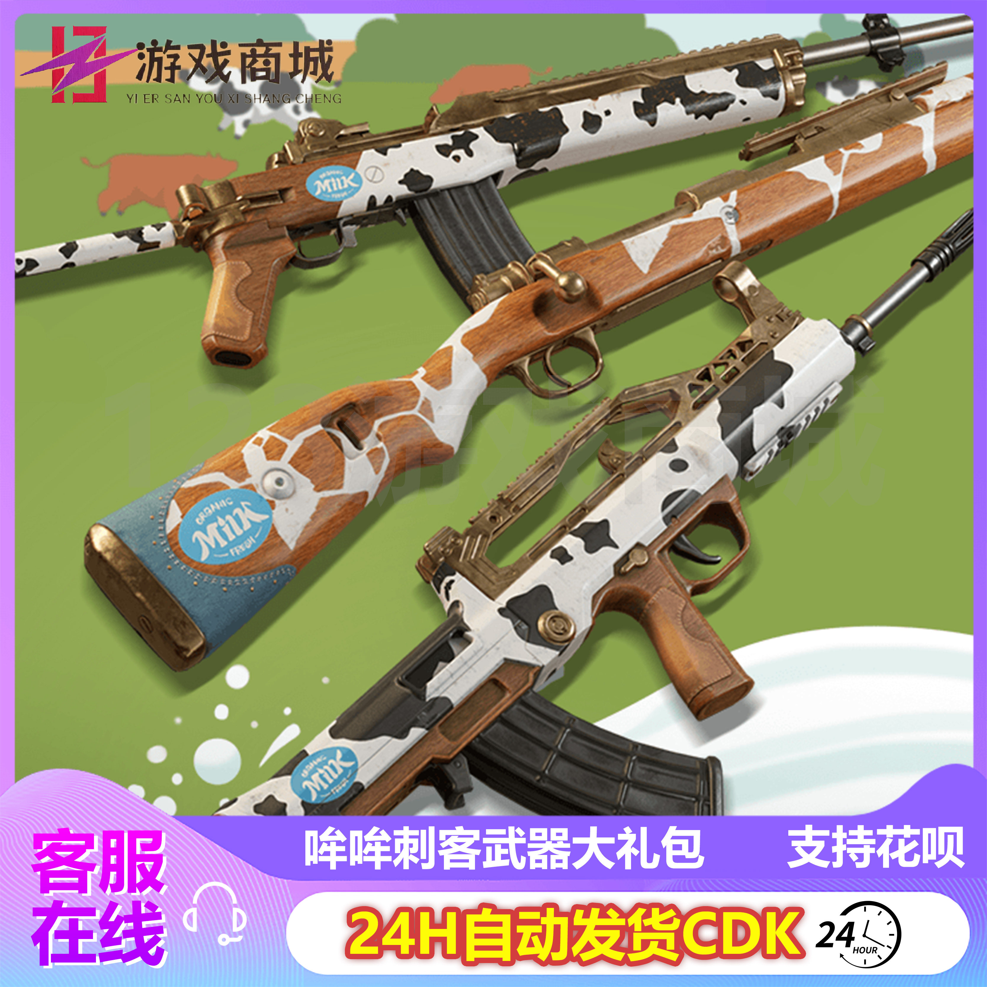 PUBG绝地求生枪皮肤哞哞刺客武器大礼包98K计数Mini吃鸡兑换码CDK