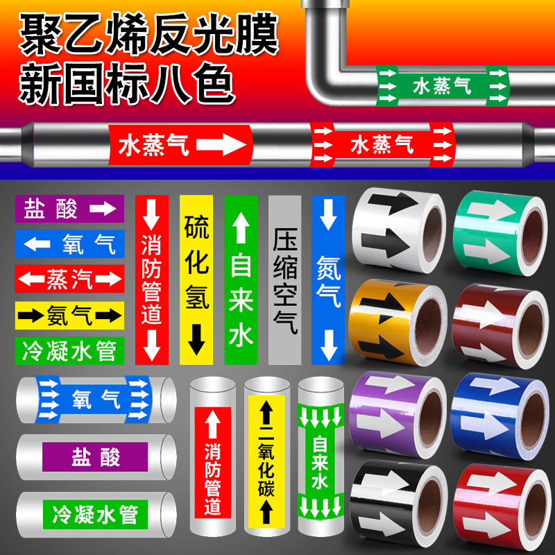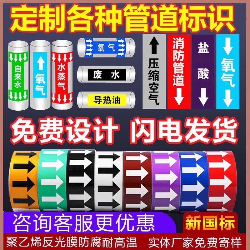管道标识贴牌贴纸国标反光膜消防化工流向箭头指示贴色环消防管路标示压缩空气蒸汽喷淋氧气不干胶标签自来水