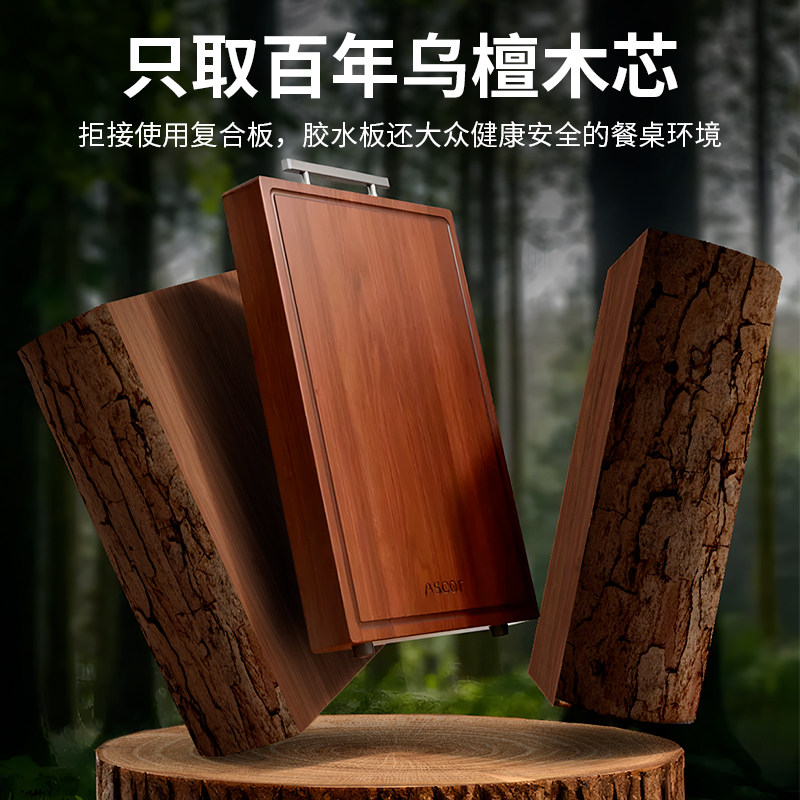 艾仕可乌檀木菜板抗菌防霉家用食品级实木砧板切菜案板揉面板整木