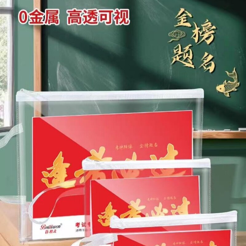 0金属文件袋考试专用袋子透明笔袋文具袋中考高考试袋考研A4拉链袋学生用a5工具拉边袋防水准考证收纳袋a6