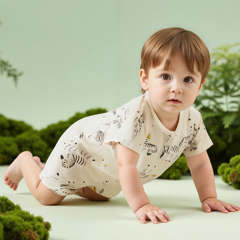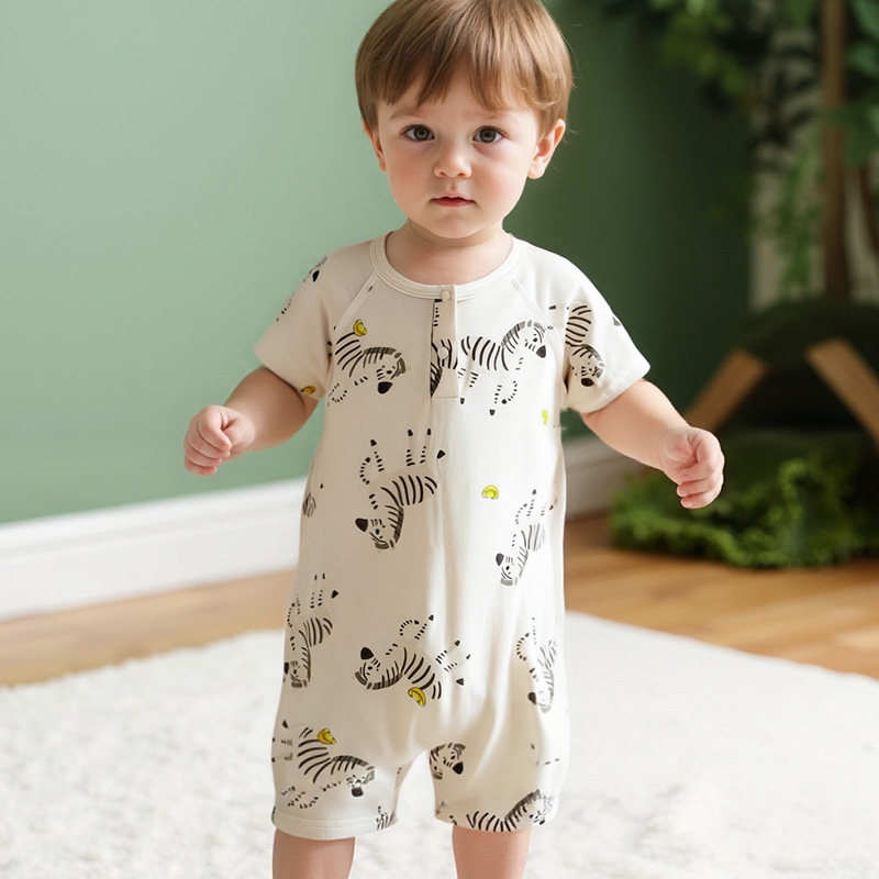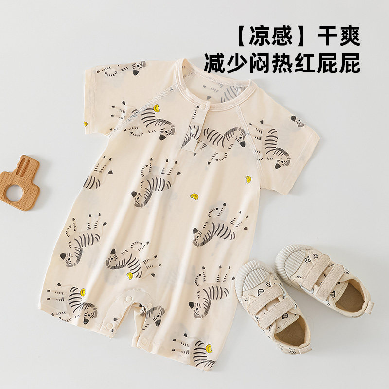 婧麒婴儿连体衣夏季短袖哈衣新生儿超萌爬爬服宝宝居家空调服衣服