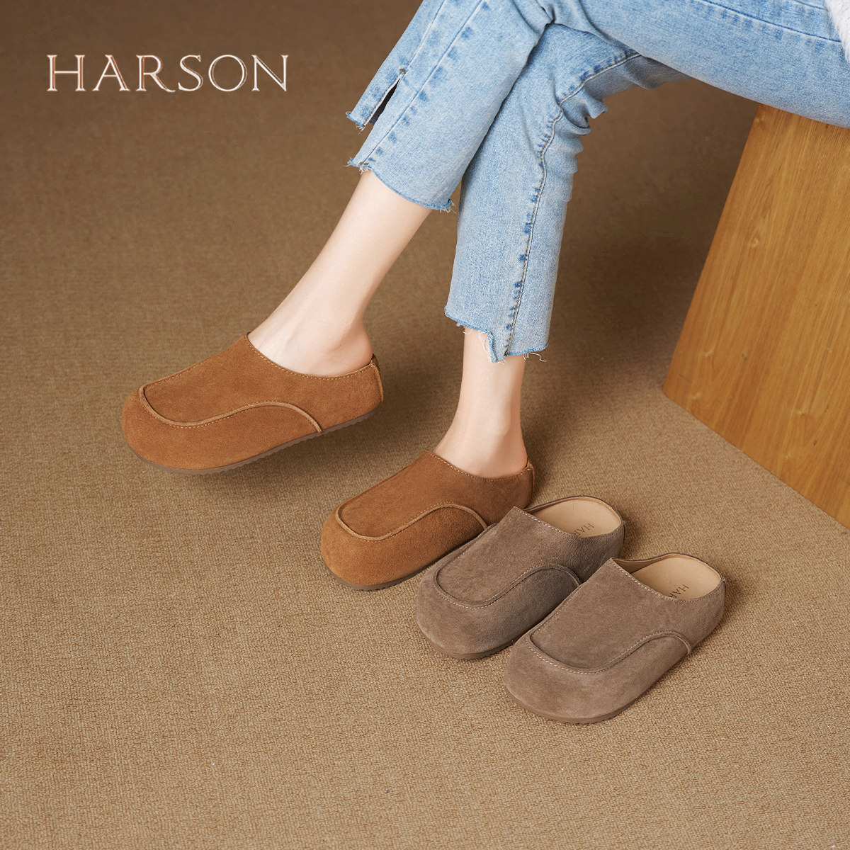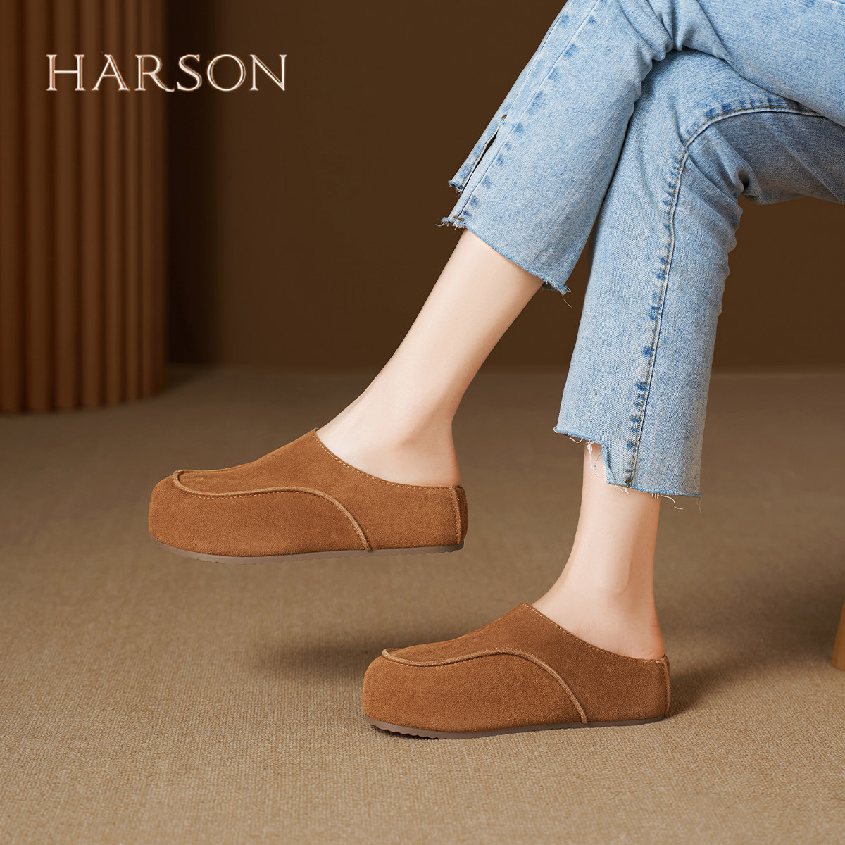 哈森一脚蹬勃肯鞋女2026春季新款爆款豆豆鞋平底单鞋休闲乐福鞋子