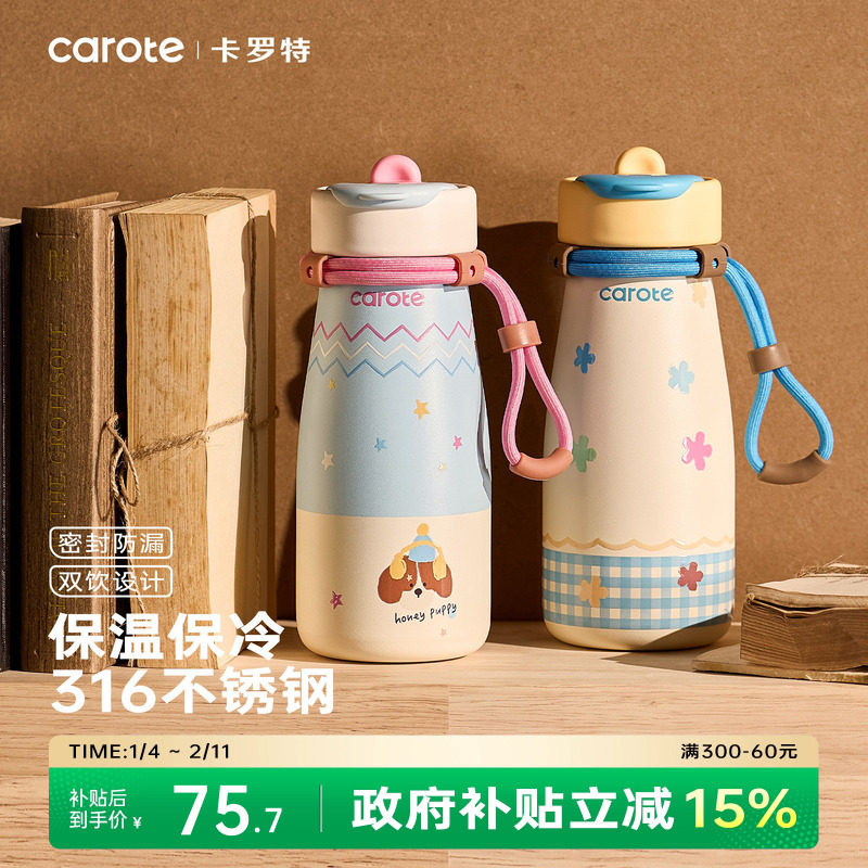 卡罗特吸管保温杯女生高颜值学生水杯大容量便携新款杯子生日礼物