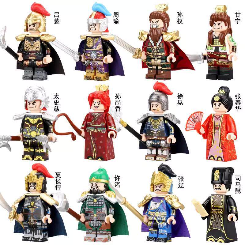 迪库积木三国小侠男孩益智拼装玩具人仔儿童拼插刘备关羽兼容乐高