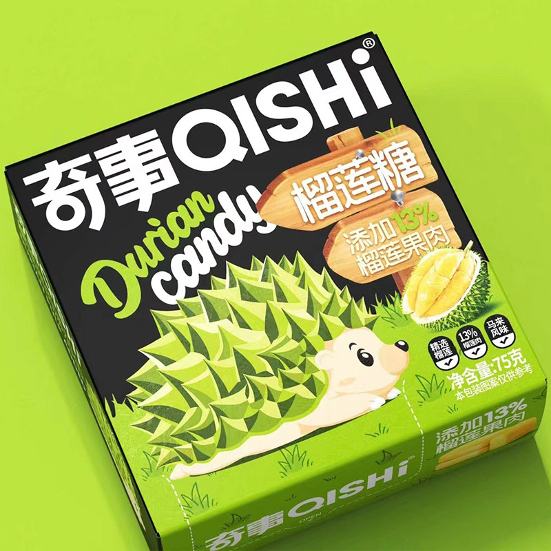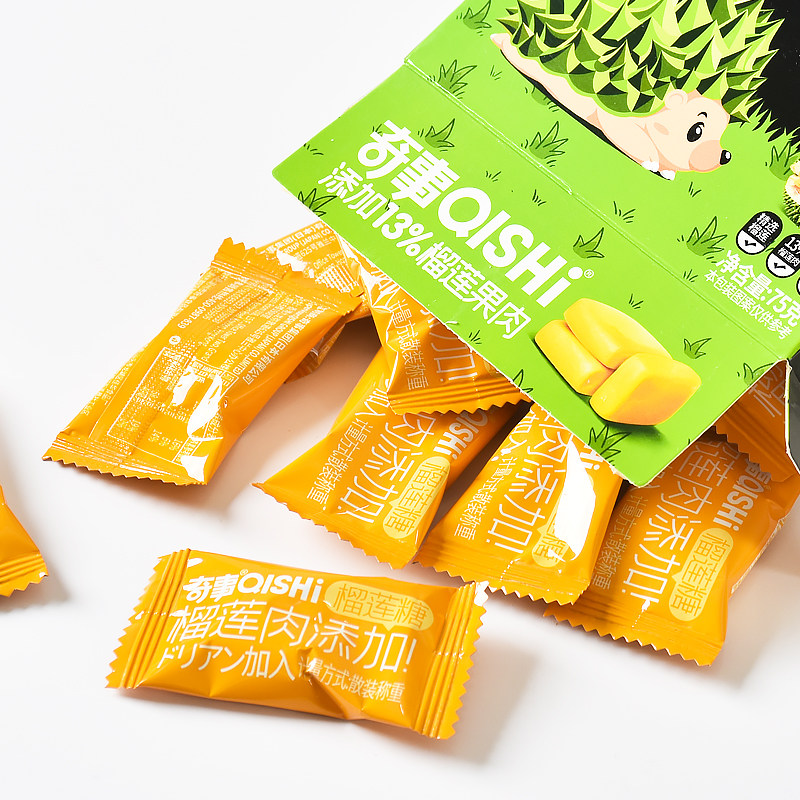 奇事榴莲糖果味奶糖75克盒装休闲零食结婚喜糖批发味榴莲味糖果